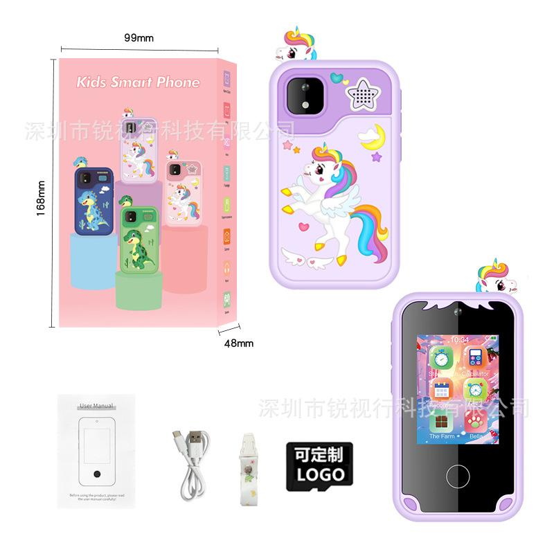 2.8 "HD 사진 터치 스크린 스마트 교육 조기 교육 포켓 계몽주의 만화 유니콘 어린이 휴대 전화 카메라