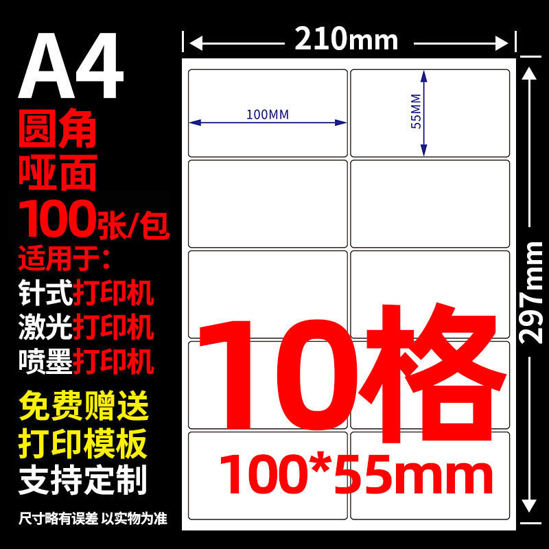 • A4 무광택 [둥근 모서리, 내부 컷 10 그리드] 100장 100*55mm