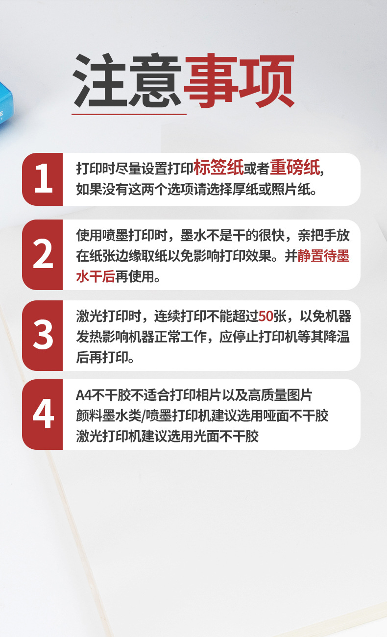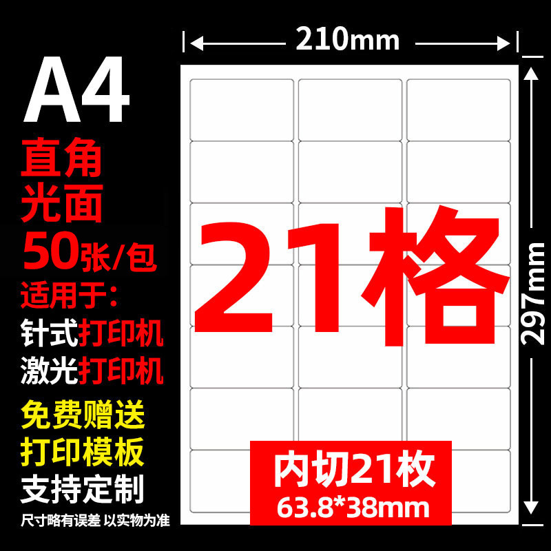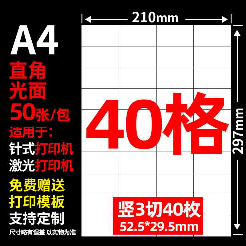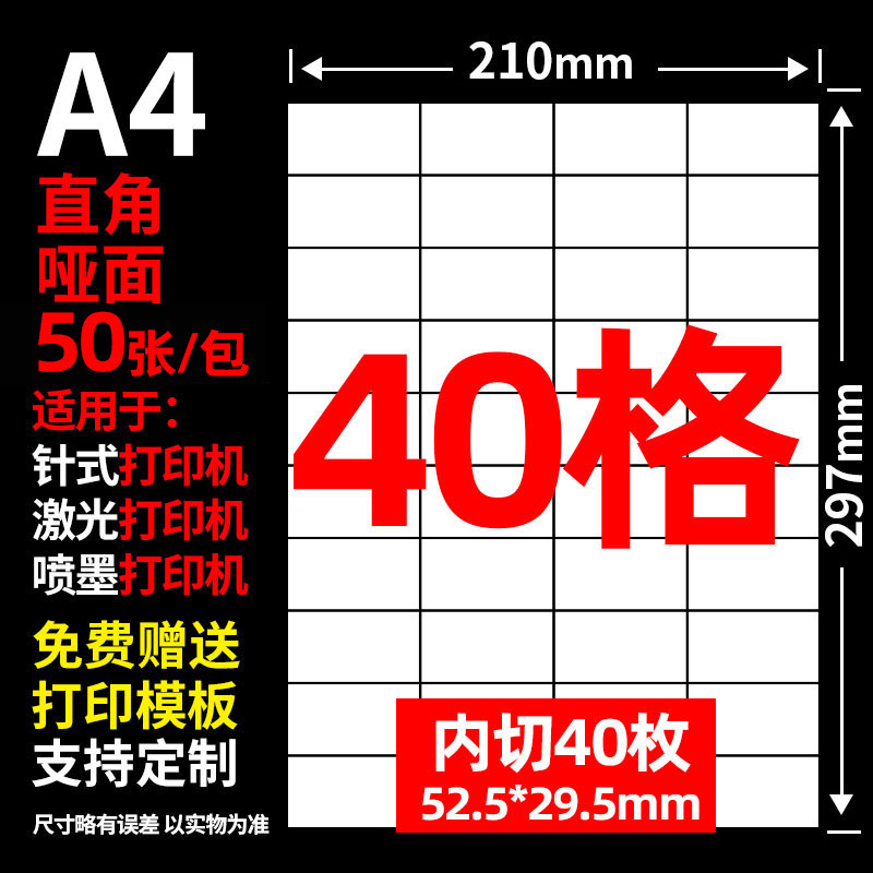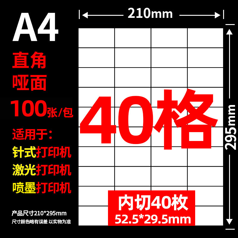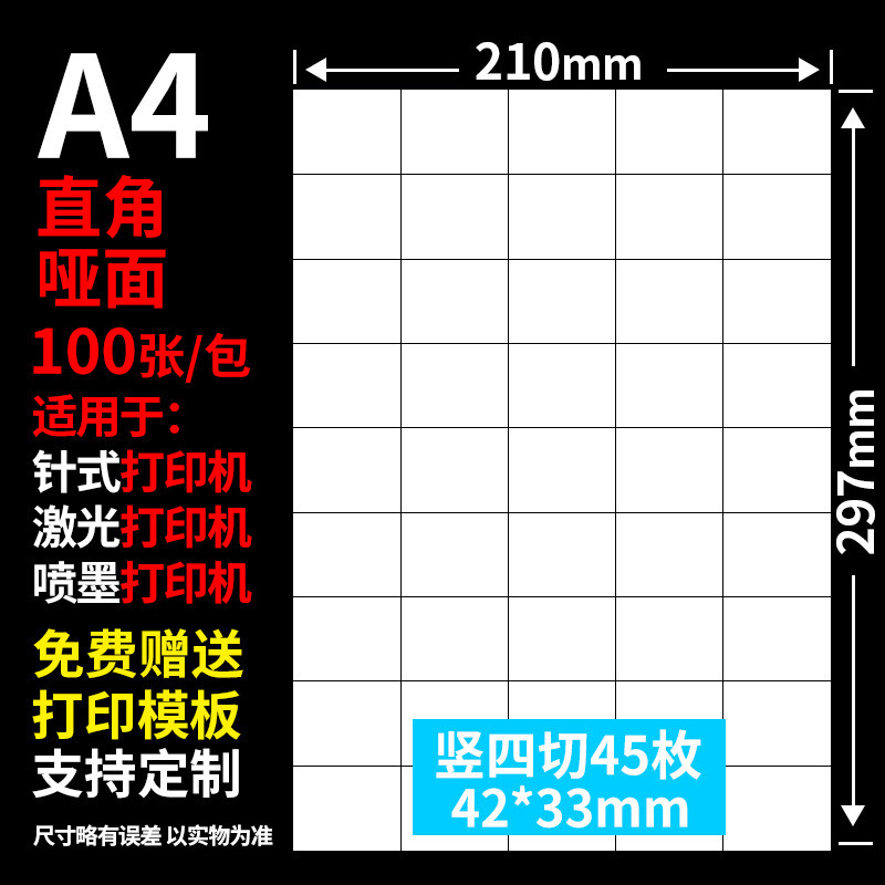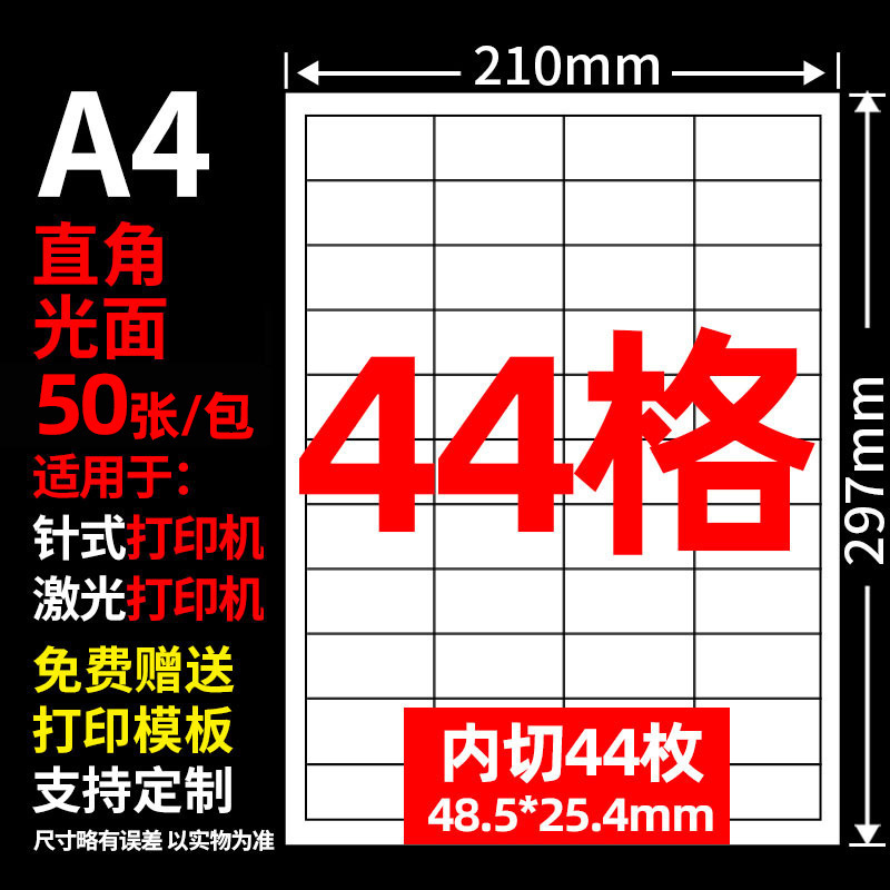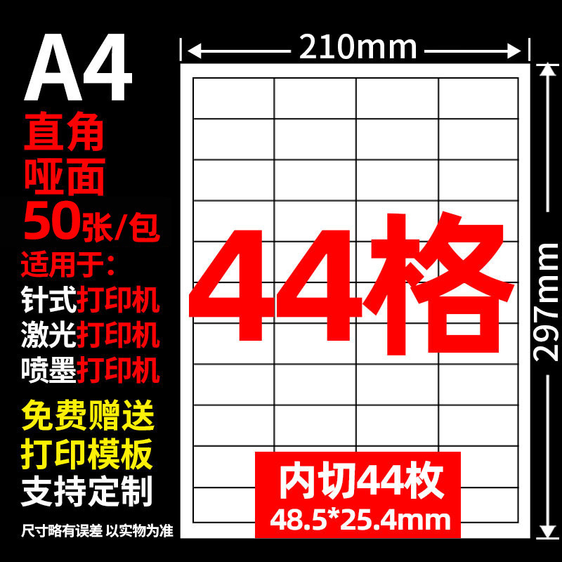 • A4 무광택 표면 [직각 44개, 50매 절단] 48.5*25.4mm