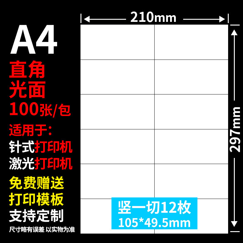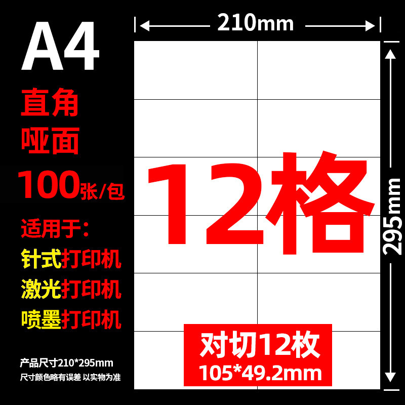 • A4 무광택 [100매로 12장 절단] 105*49mm