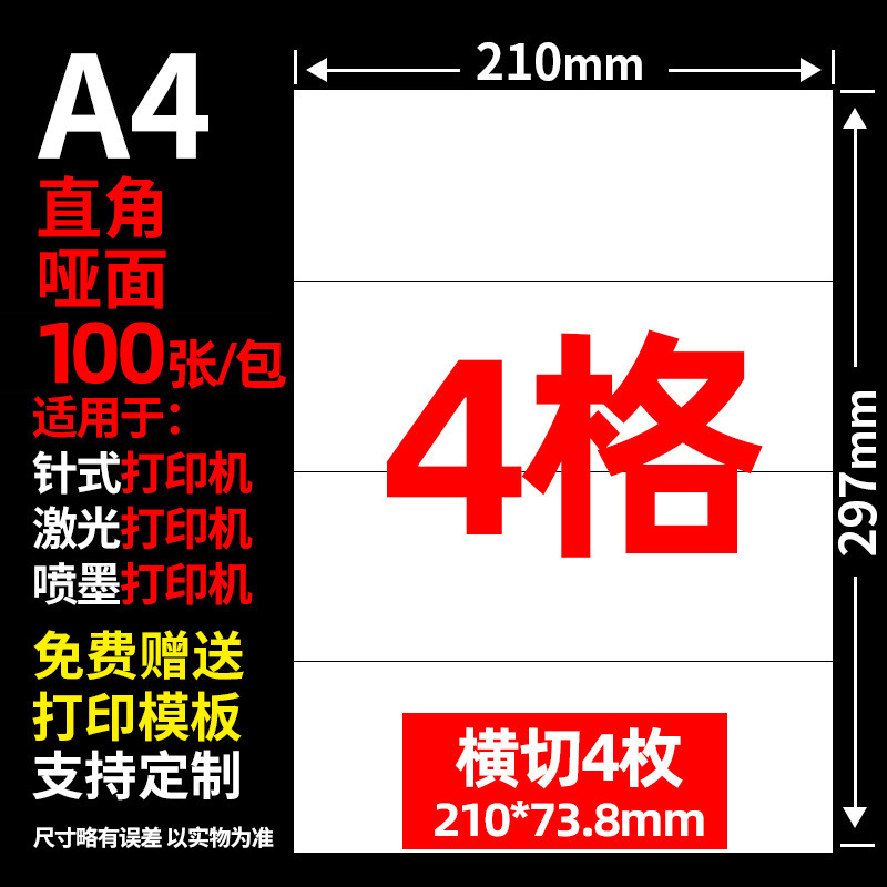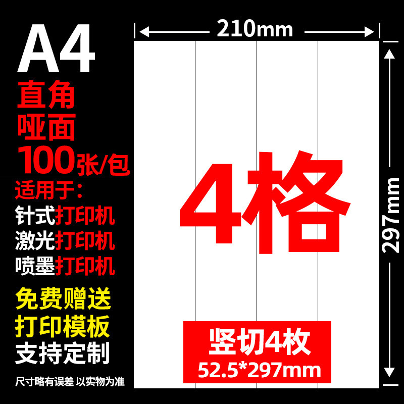 • A4 무광택 [세로 4장 절단, 100매] 52.5*297mm