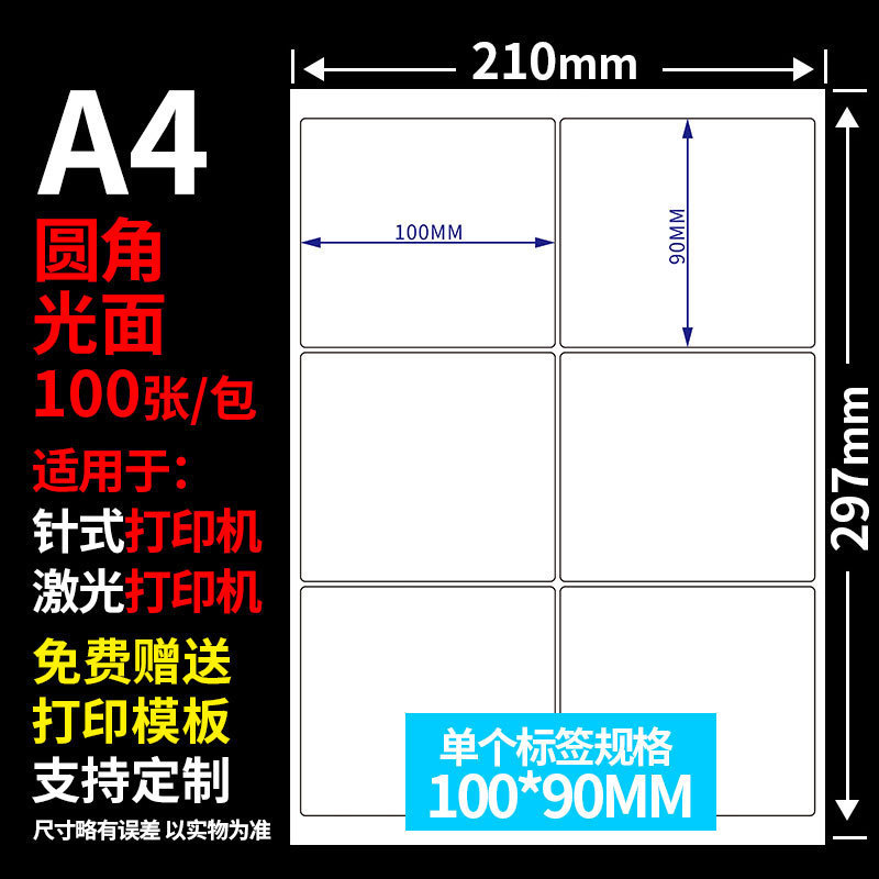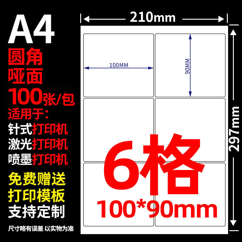 • A4 무광택 [둥근 모서리, 6격자 절단] 100매 100*90mm