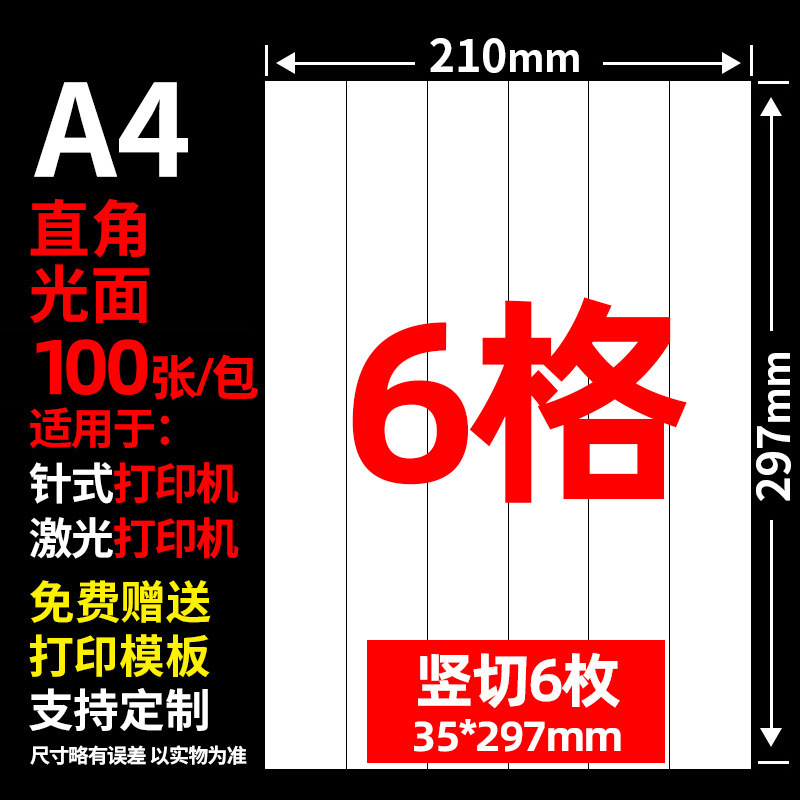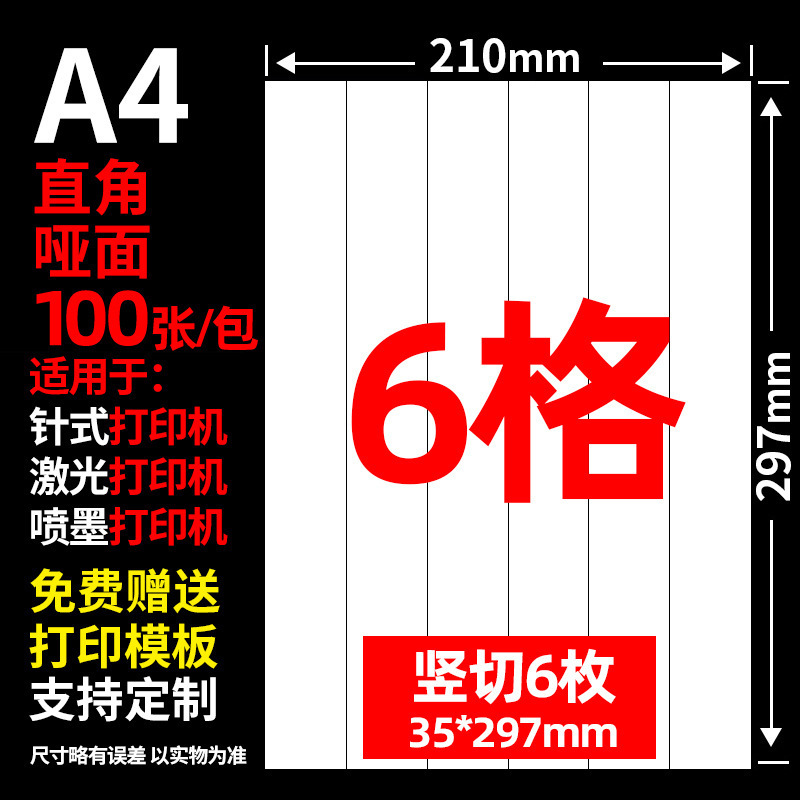 • A4 무광택 [세로 6장 절단, 100매] 35*297mm