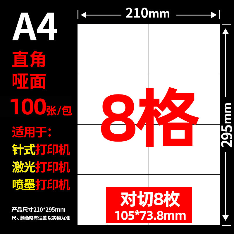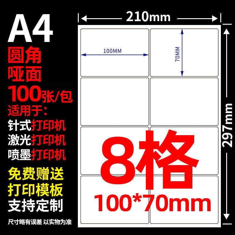 • A4 무광택 [둥근 모서리, 내부 컷 8격자] 100장 100*70mm