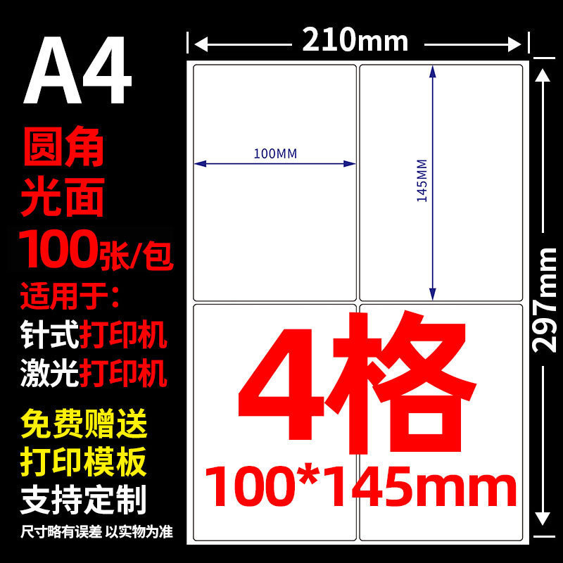 • A4 광택 [둥근 모서리, 안쪽 4격자 절단] 100장 100*145mm