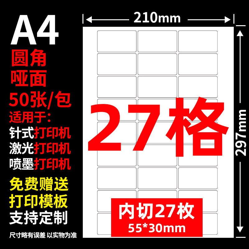 • A4 무광택 [둥근 모서리 27장, 50장] 55*30mm