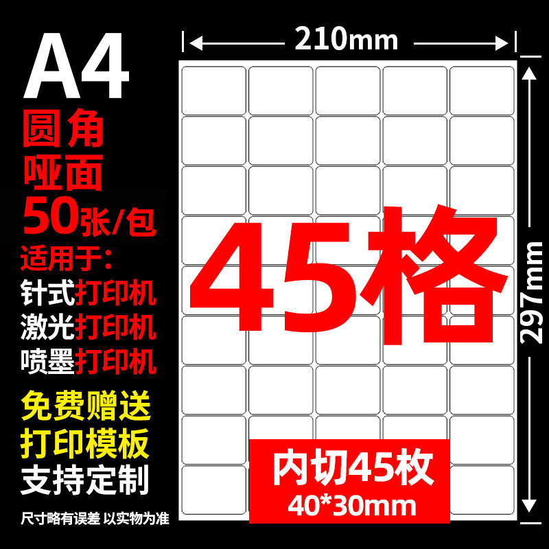 • A4 무광택 표면 [둥근 모서리, 내부 컷 45매, 50매] 40*30mm