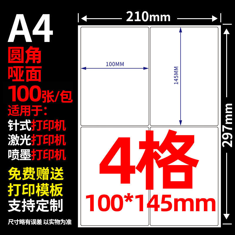 • A4 무광택 [둥근 모서리, 내부 컷 4 그리드] 100장 100*145mm