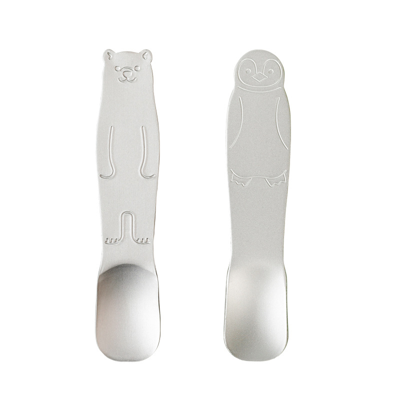 ECHO 일본 수입 알루미늄 만화 아이스크림 스푼 화이트 베어 펭귄 만화 가정용 요구르트 스푼 아이스크림 스푼