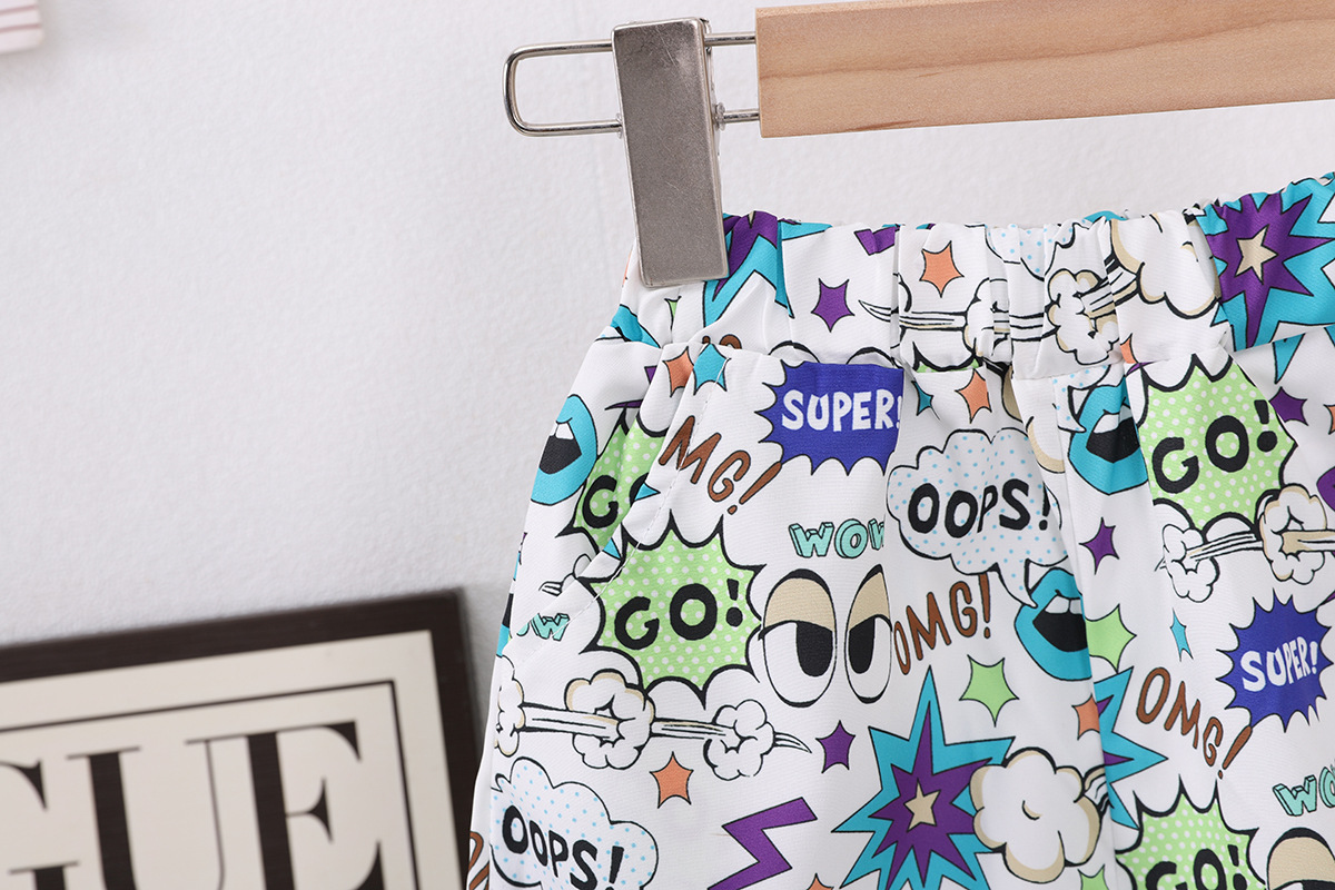 2025 새로운 인쇄 만화 어린이 셔츠 캐주얼 다목적 우유 흰색 귀여운 퍼프 슬리브 어린애 같은 어린이스토어 가기