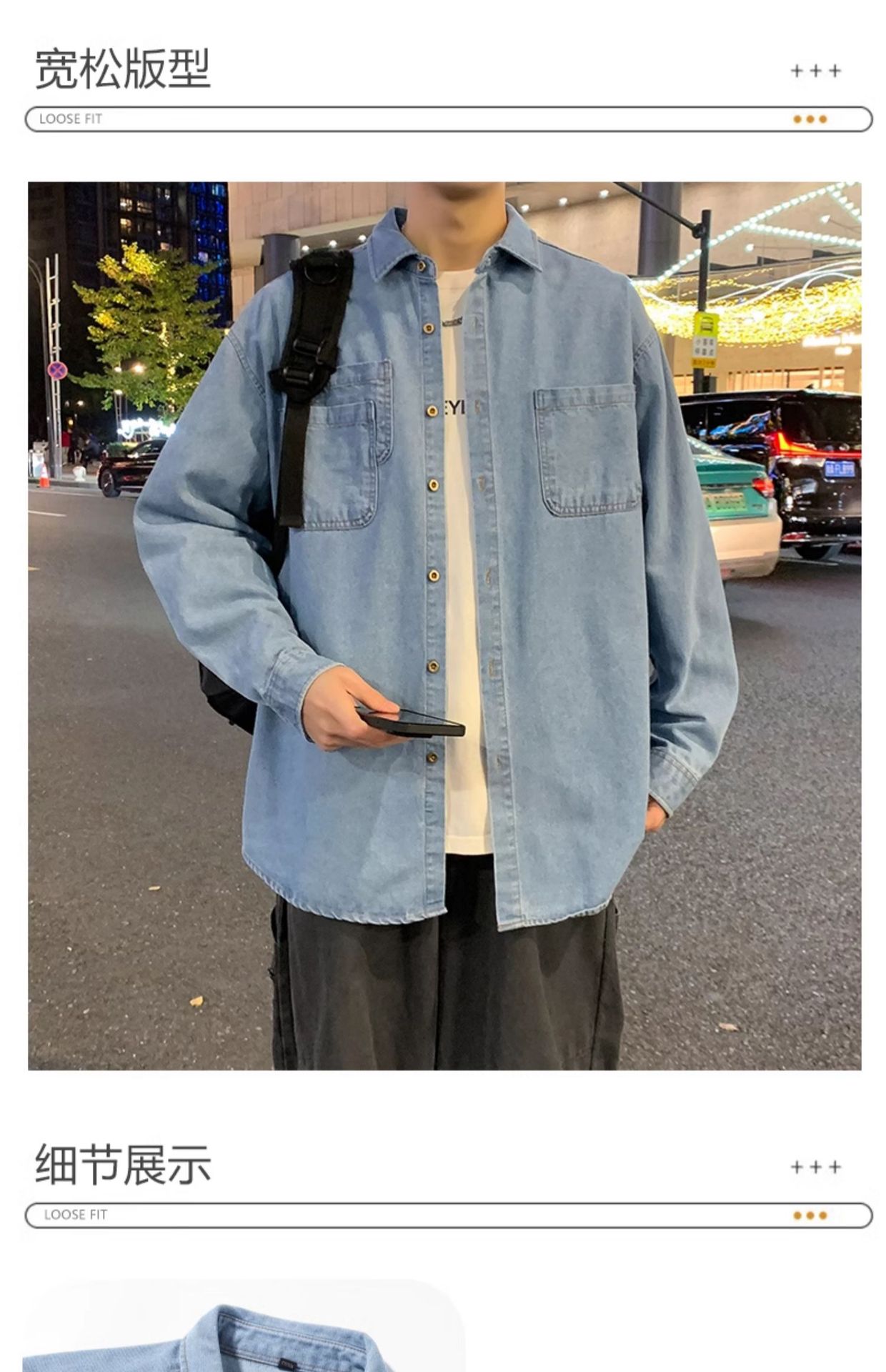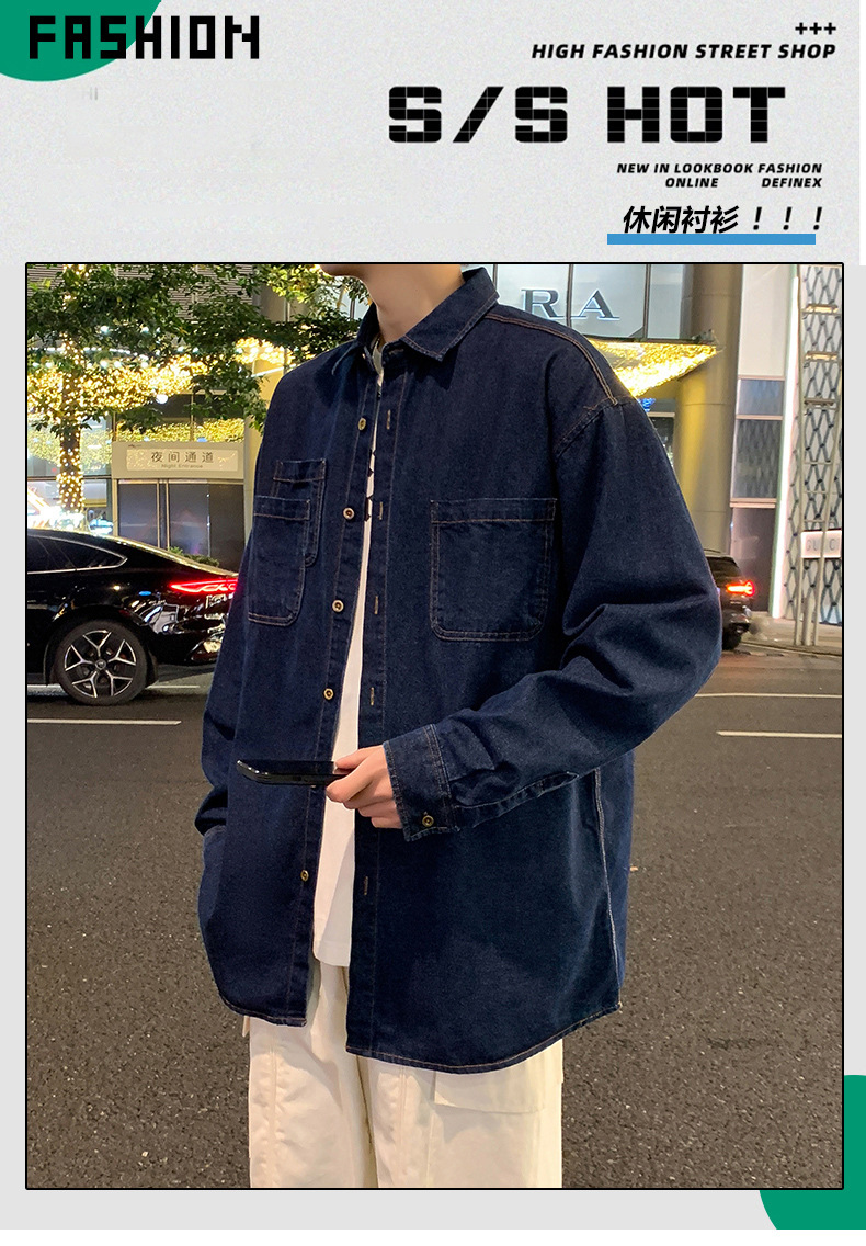 NASA 다크 블루 데님 셔츠 남자의 봄과 가을 2025 새로운 높은 감각 느슨한 캐주얼 셔츠 코트 트렌디스토어 가기