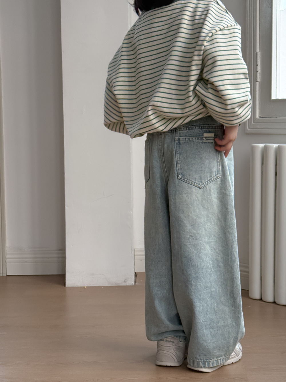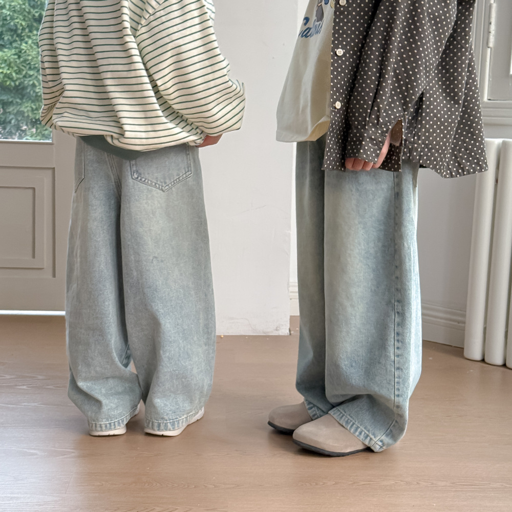 어린이 바지 2025 봄 소년과 소녀 한국 스타일 단색 캐주얼 데님 스트레이트 다리 바지 어린이 올매치 느슨한 넓은 다리 바지스토어 가기