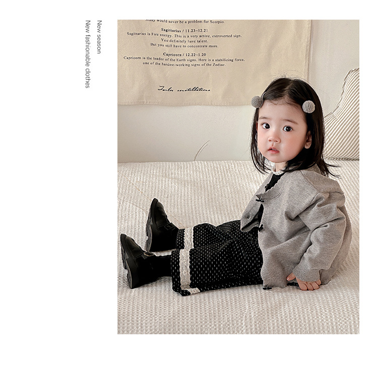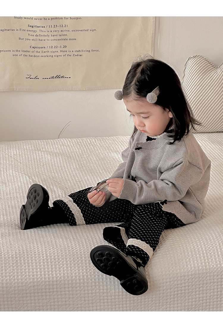 여자 정장 봄 스웨터 카디건 2025 새로운 스타일 베이비 탑 유아 넓은 다리 바지 나들이 옷