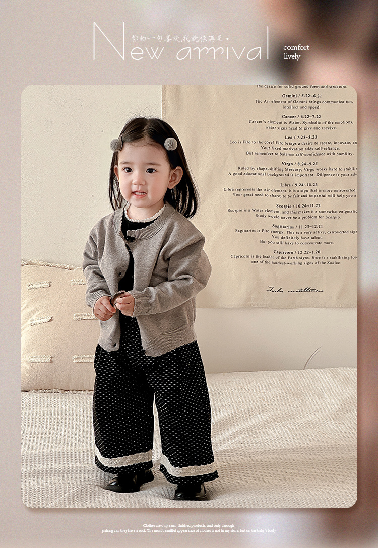여자 정장 봄 스웨터 카디건 2025 새로운 스타일 베이비 탑 유아 넓은 다리 바지 나들이 옷스토어 가기