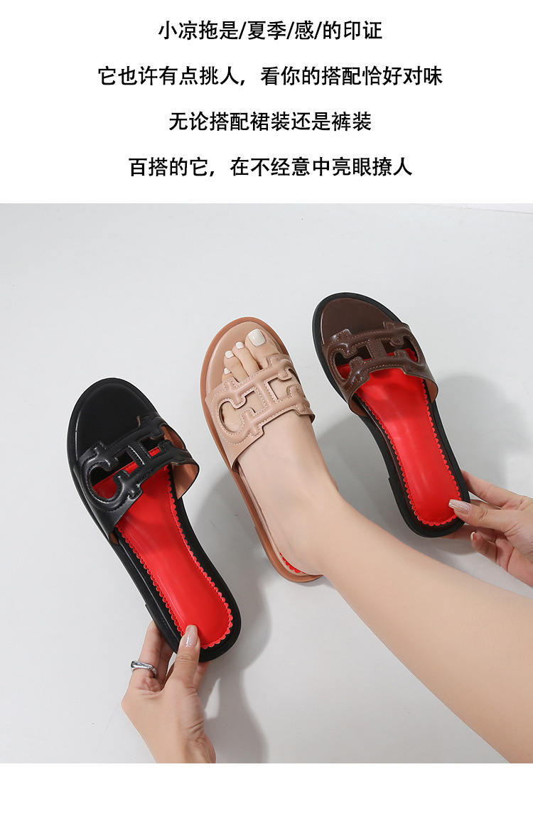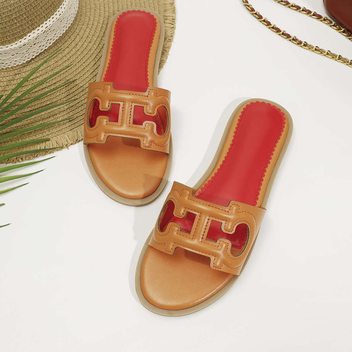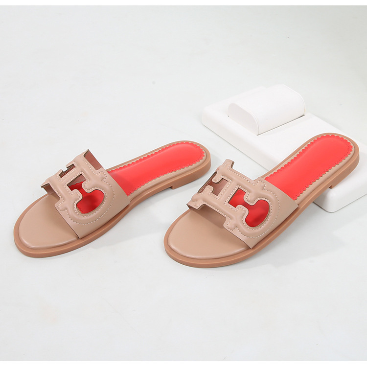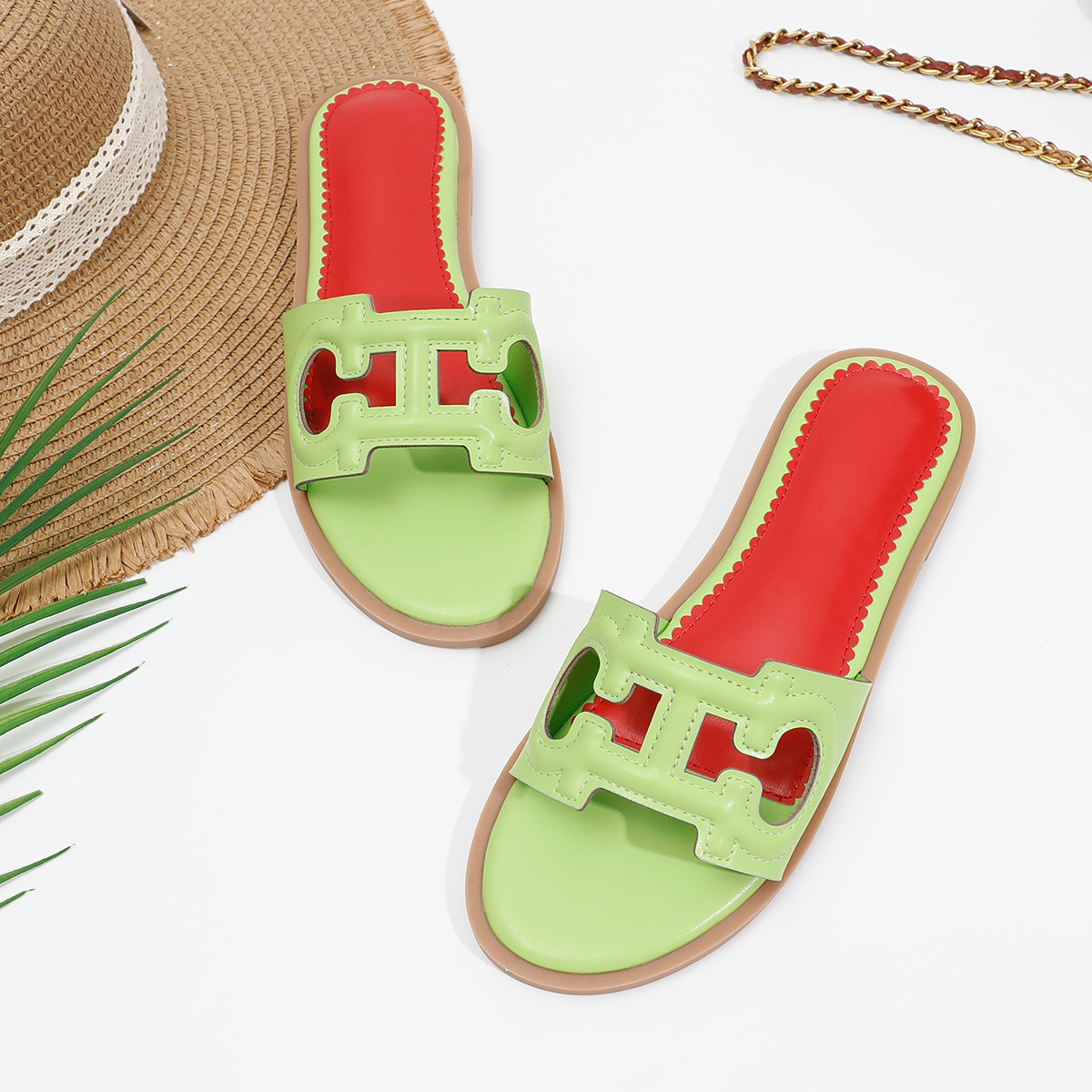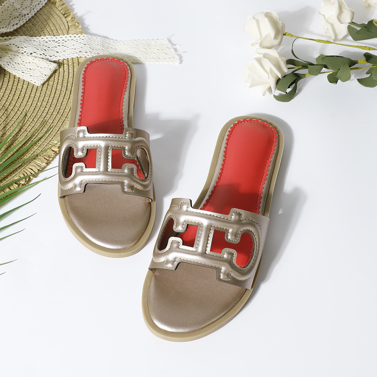 2025 새로운 여름 의상 세련된 플랫 슬리퍼 여행 해변 샌들 여성용 플랫 슈즈