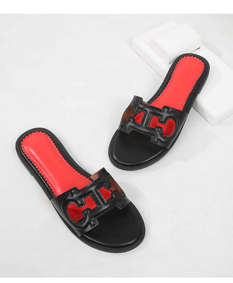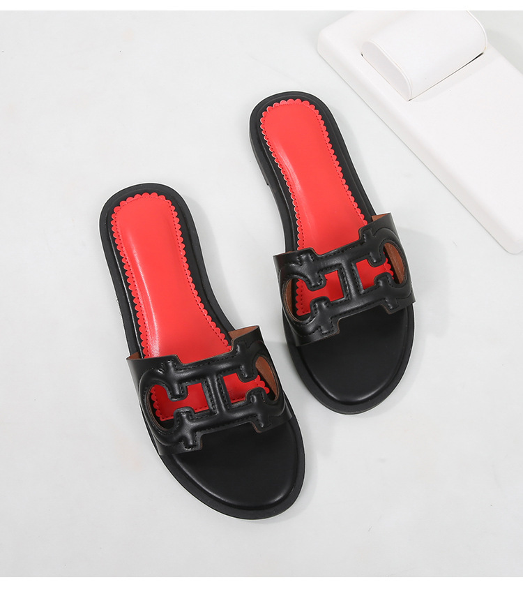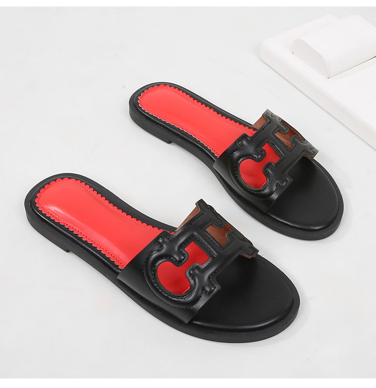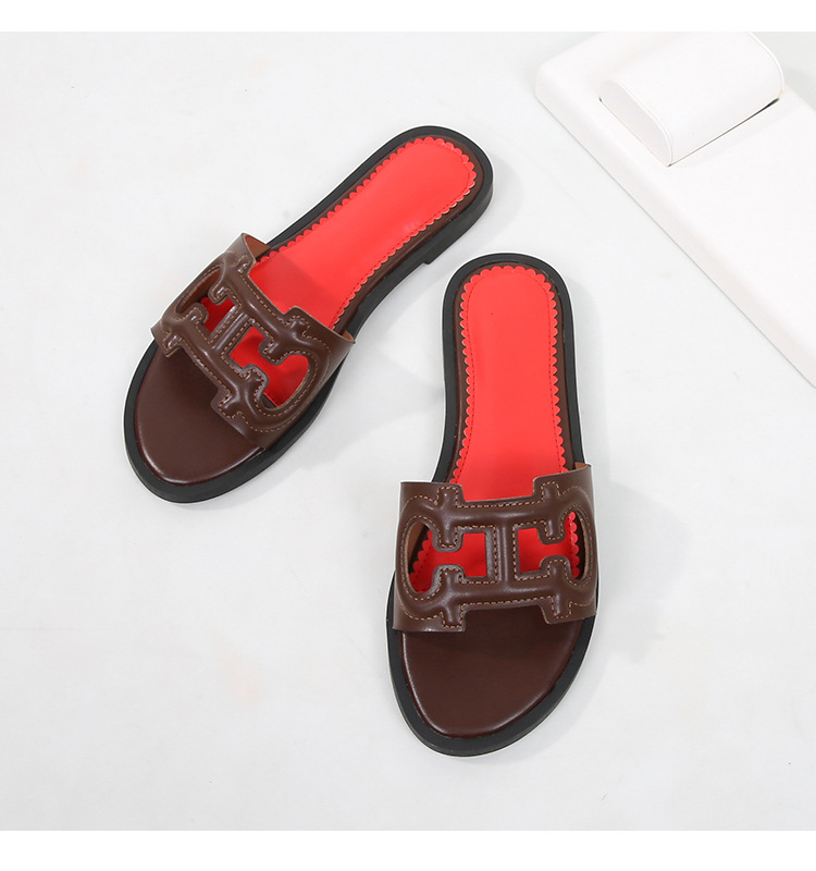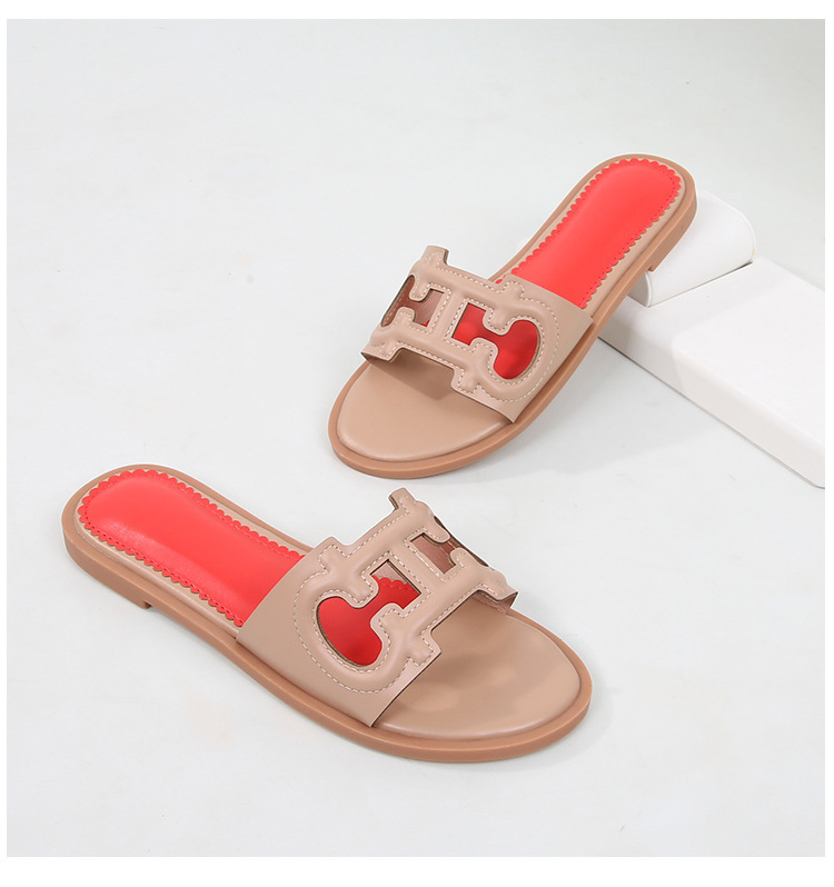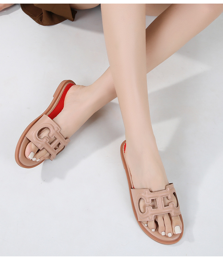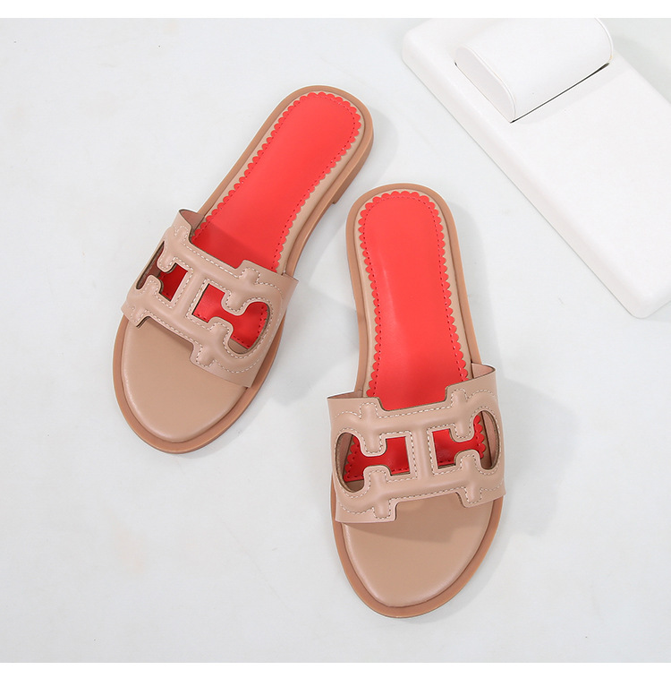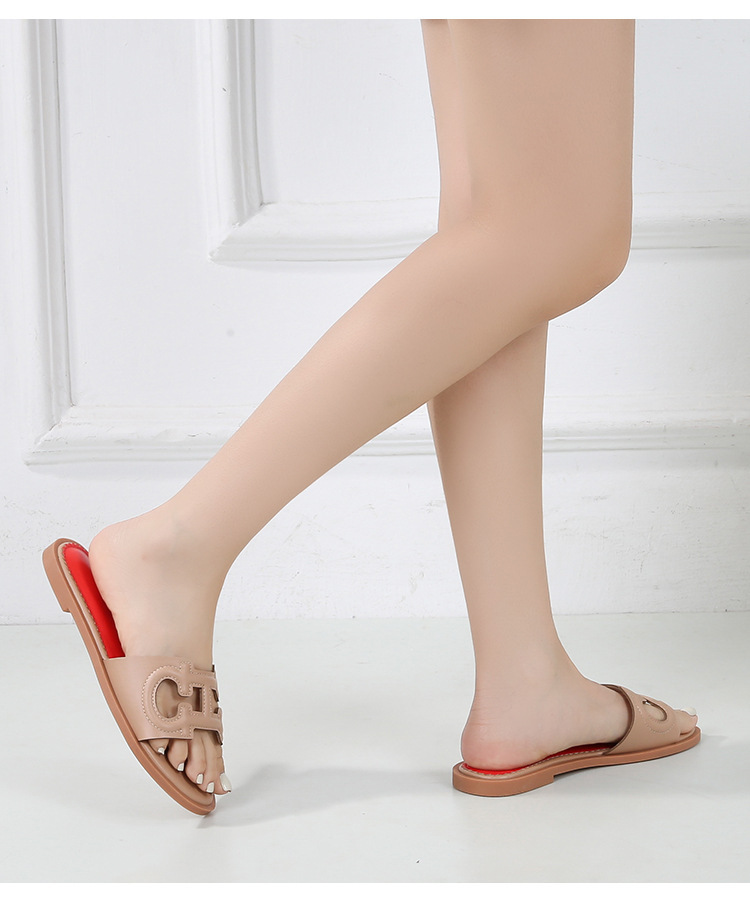 2025 새로운 여름 의상 세련된 플랫 슬리퍼 여행 해변 샌들 여성용 플랫 슈즈