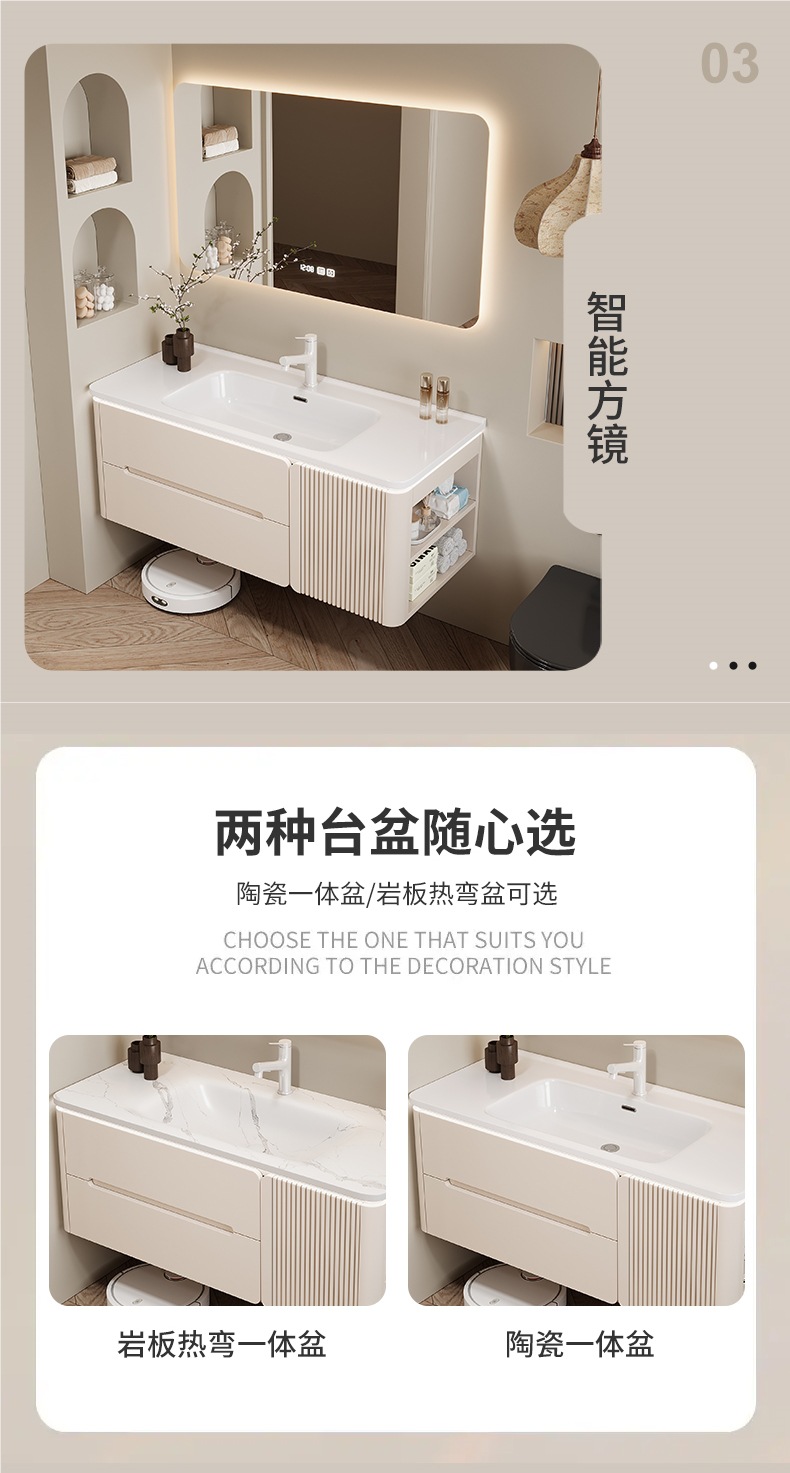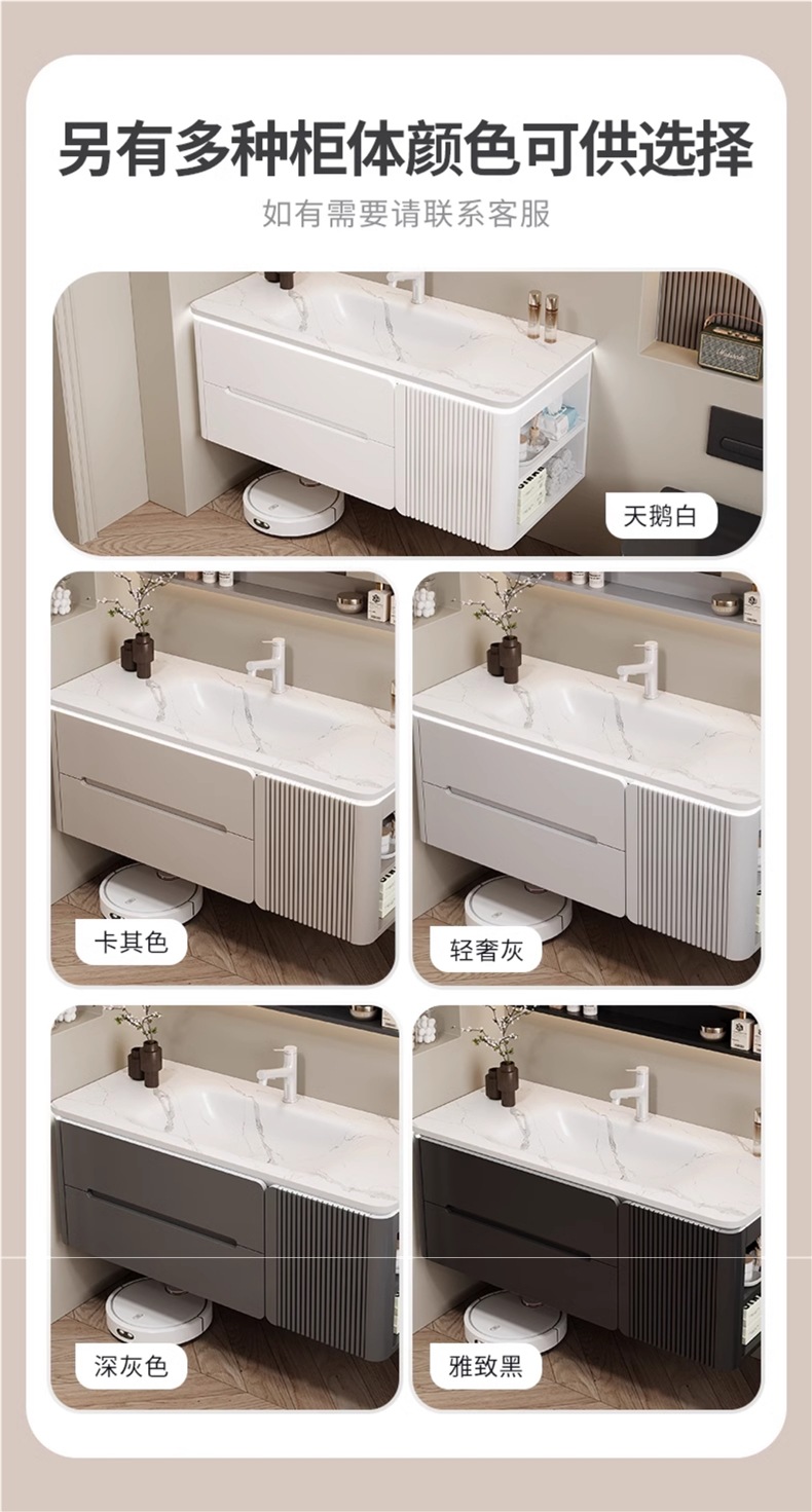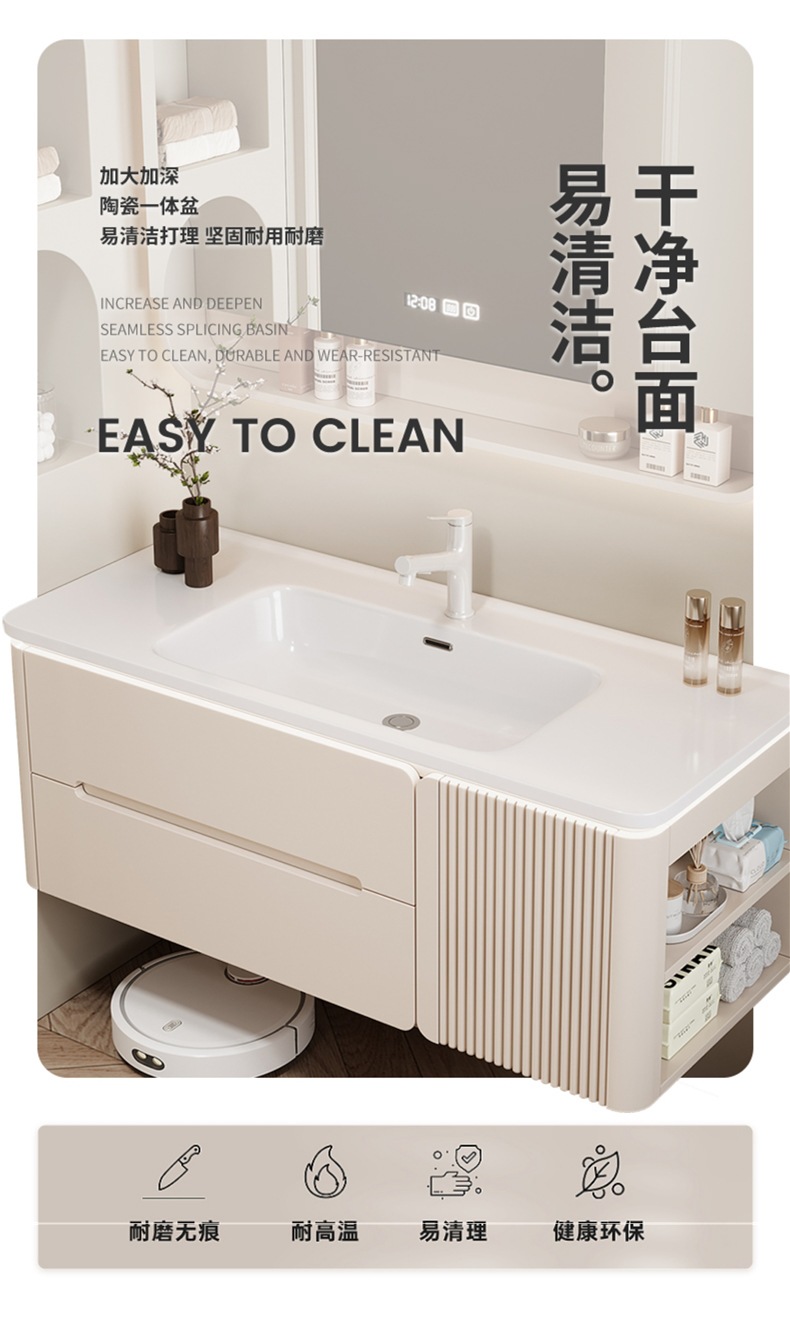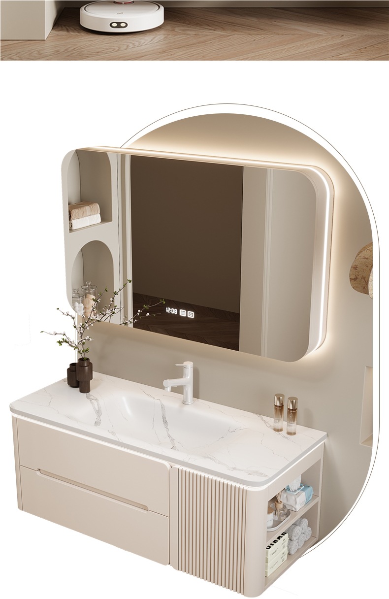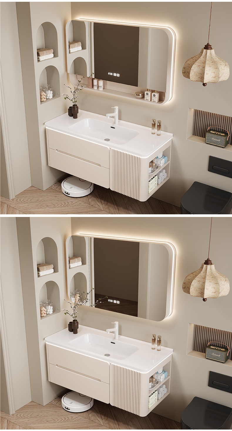 • 80CM 개방형 스마트 수납 거울 캐비닛 + 핫 벤딩 일체형 세면대 무료 설치 + 기본 오른쪽 캐비닛, 왼쪽 연결 필요