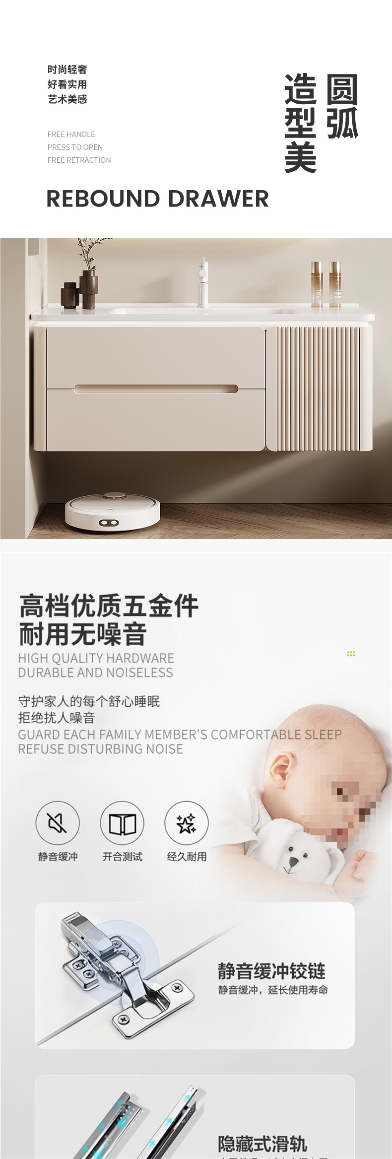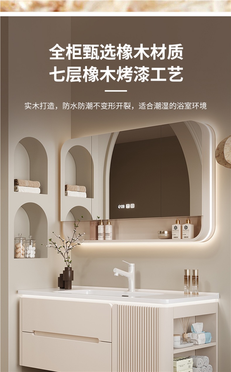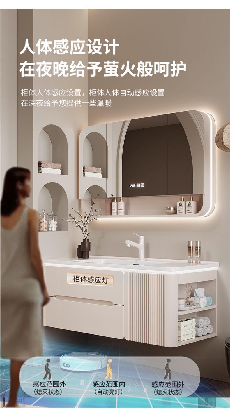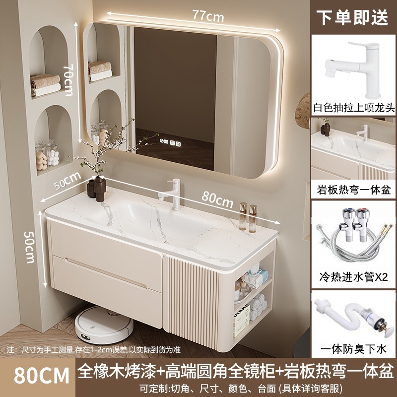 • 80CM 아크 풀 미러 상하 조명 미러 캐비닛 + 핫 벤딩 통합 세면대 무료 설치 + 기본 오른쪽 캐비닛, 왼쪽 연결 필요