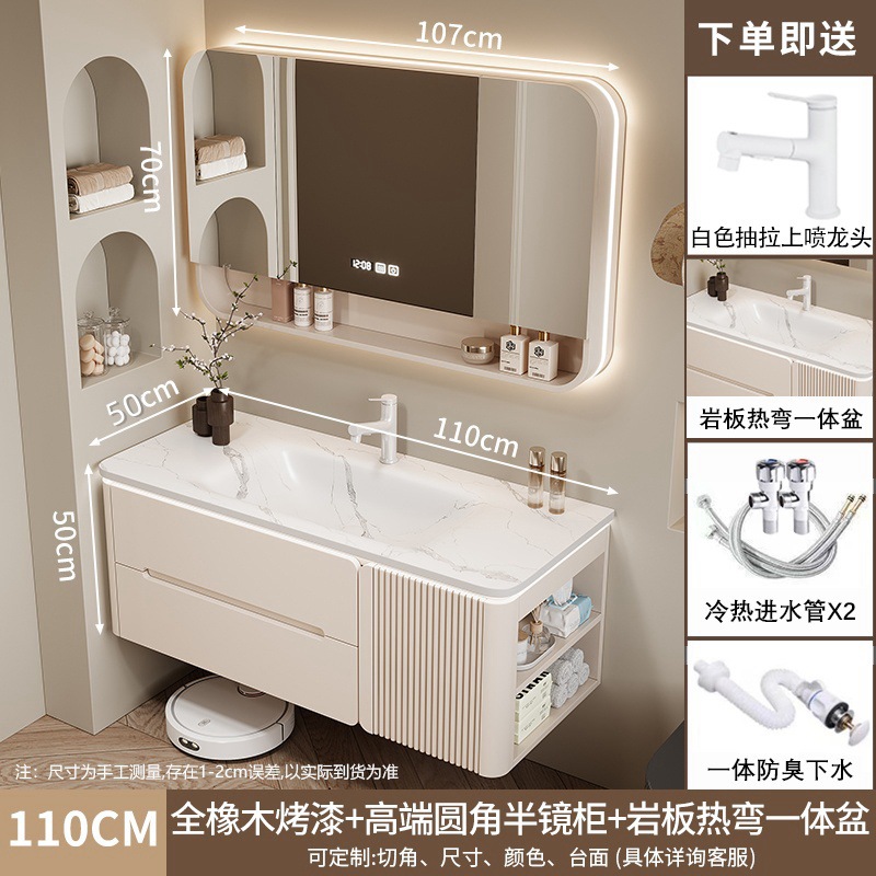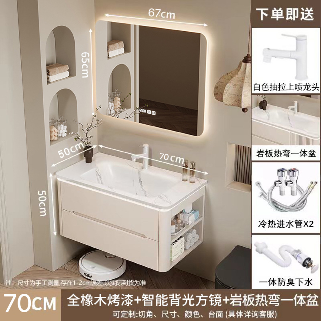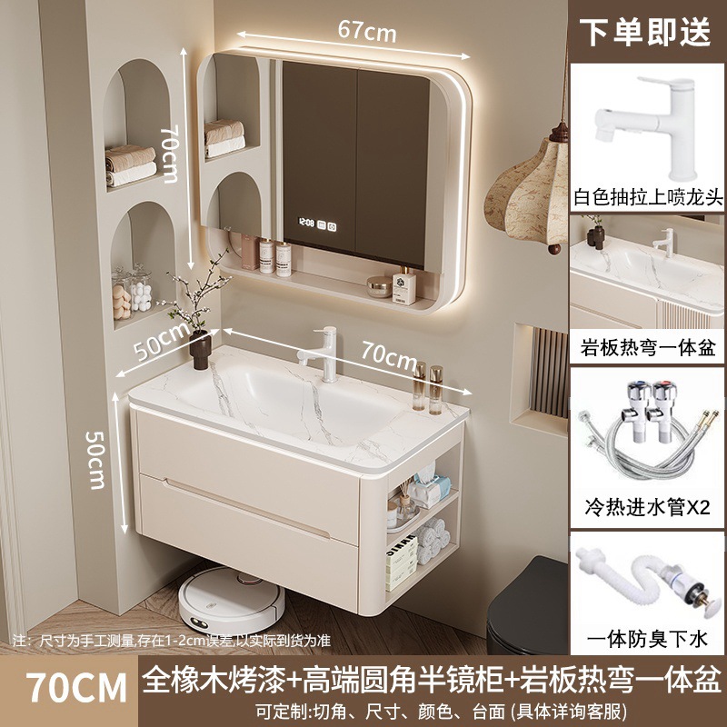 • 70CM 아크 풀 미러 상하 조명 미러 캐비닛 + 핫 벤딩 통합 세면대 무료 설치 + 기본 오른쪽 캐비닛, 왼쪽 연결 필요
