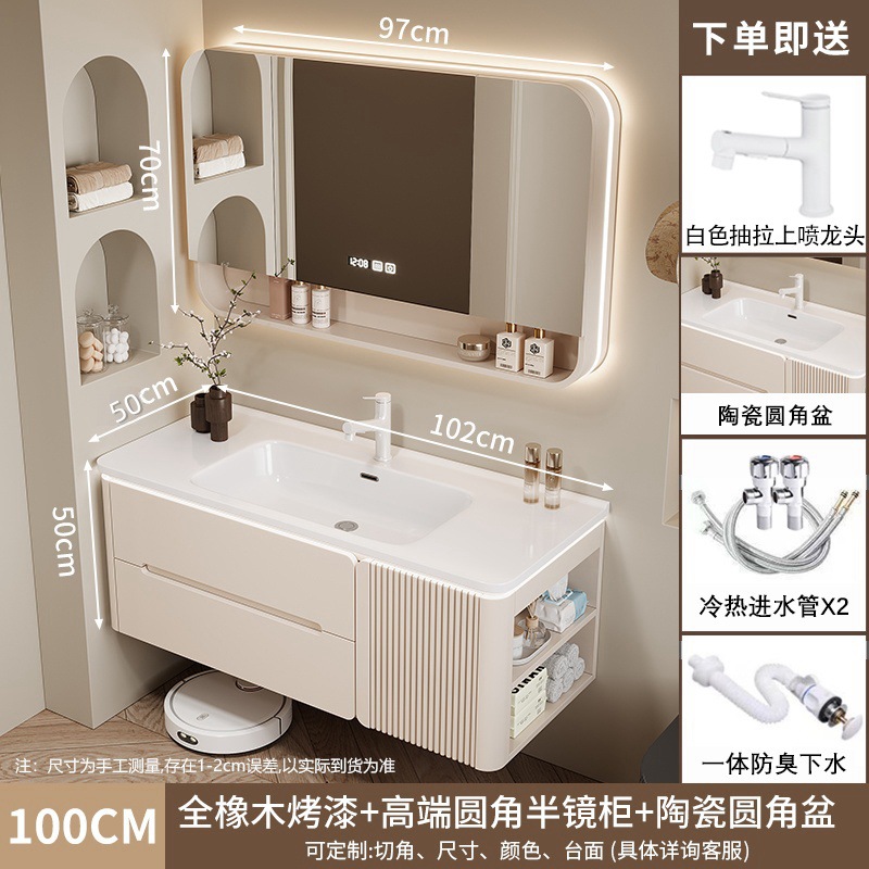 • 100CM 아크 풀 미러 상하 조명 미러 캐비닛 + 핫 벤딩 통합 세면대 무료 설치 + 기본 오른쪽 캐비닛, 왼쪽 연결 필요