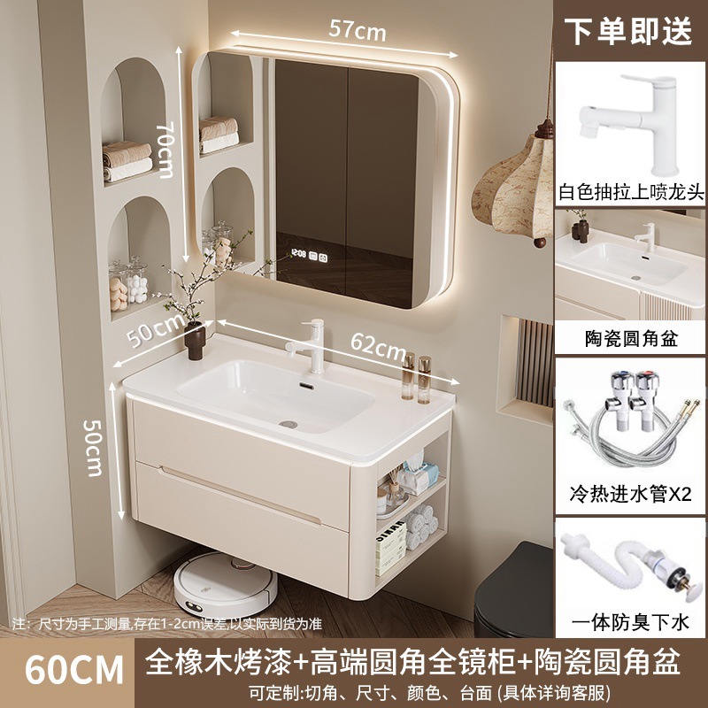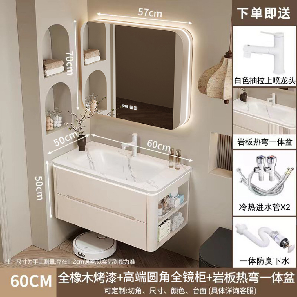 • 60CM 아크 풀 미러 상하 조명 미러 캐비닛 + 핫 벤딩 통합 세면대 무료 설치 + 기본 오른쪽 캐비닛, 왼쪽 연결 필요