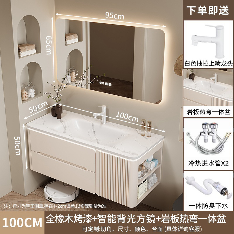 • 100CM 개방형 스마트 수납 거울 캐비닛 + 핫 벤딩 일체형 세면대 무료 설치 + 기본 오른쪽 캐비닛, 왼쪽 연결 필요