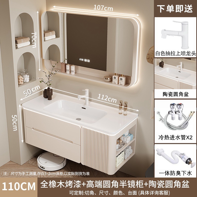 • 110CM 개방형 스마트 수납 거울 캐비닛 + 세라믹 일체형 세면대 무료 설치 + 기본 오른쪽 캐비닛, 왼쪽 연결 필요