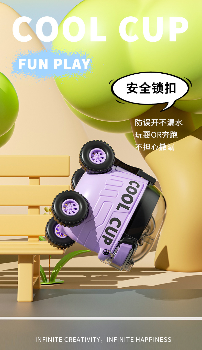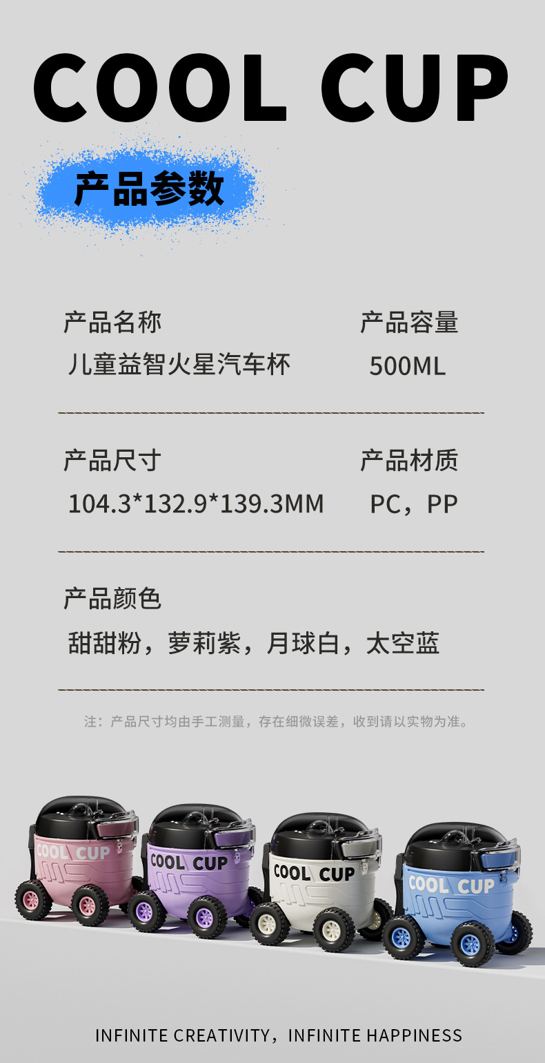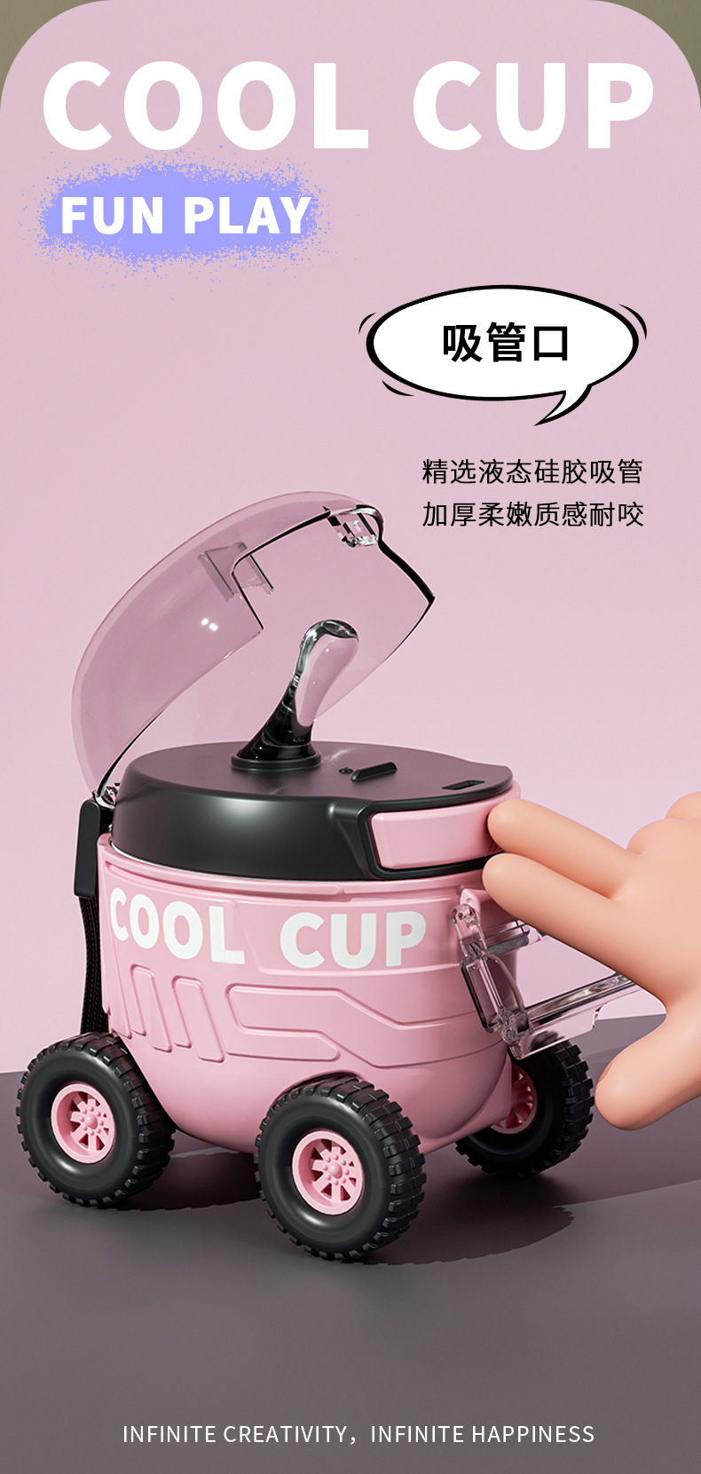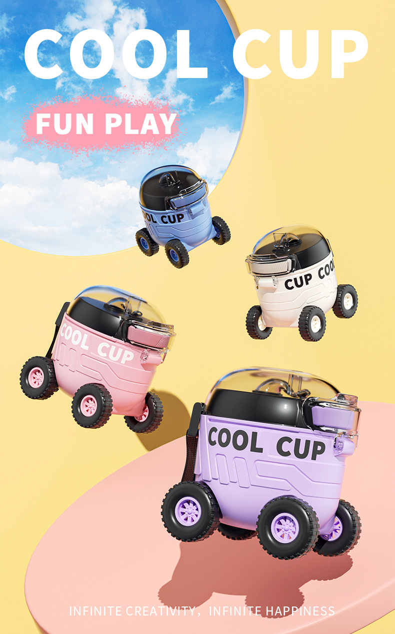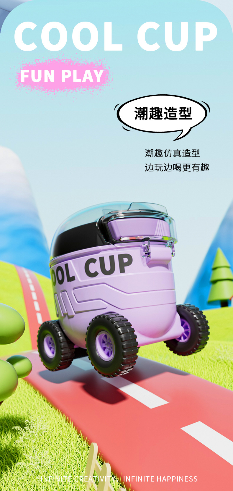 새로운 만화 어린이 밀짚 물 컵 플라스틱 컵 화성 자동차 컵 끈 휴대용 대용량 학생 주전자