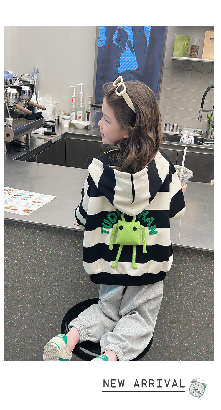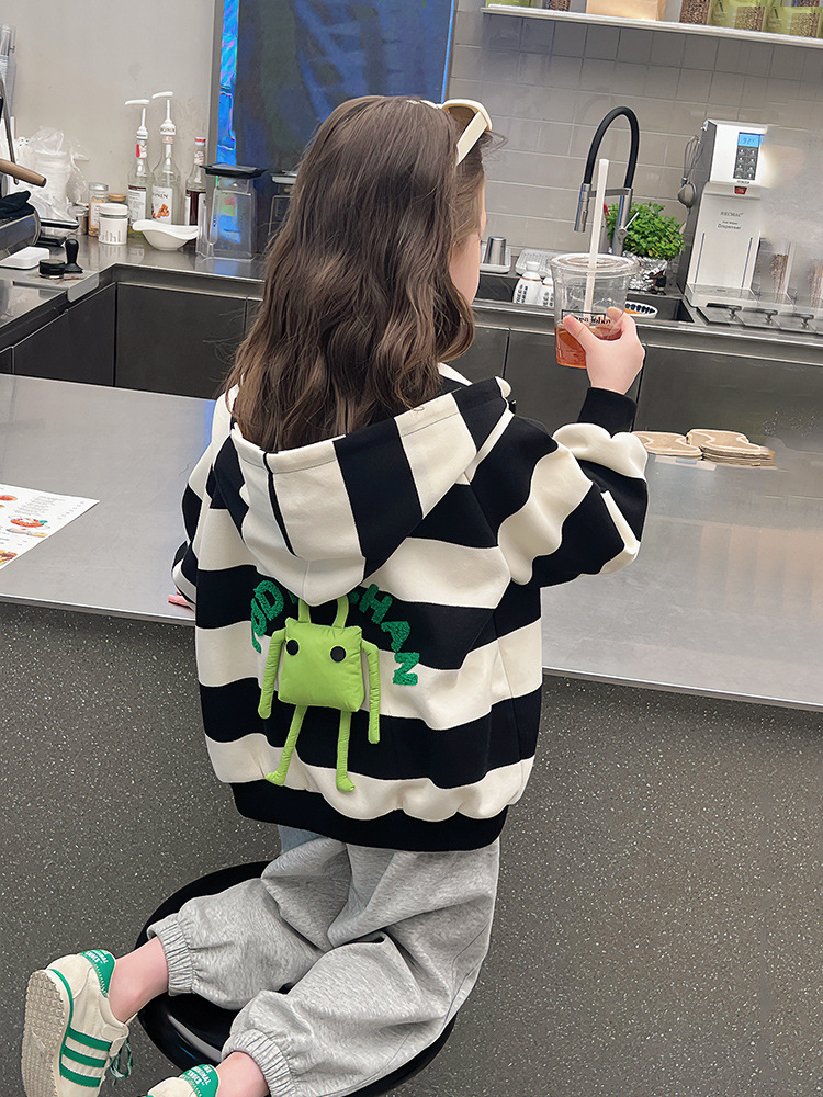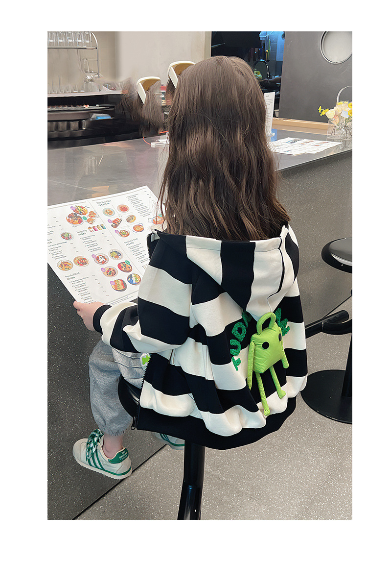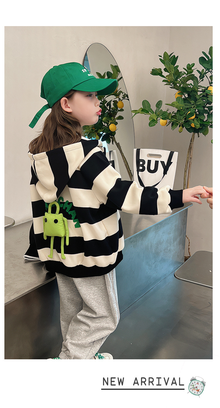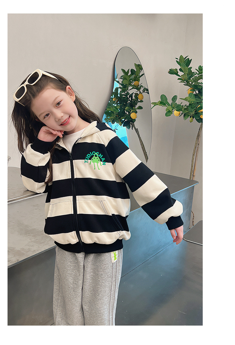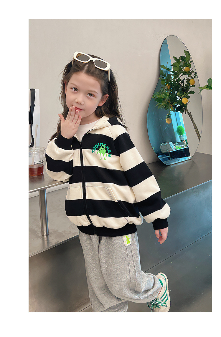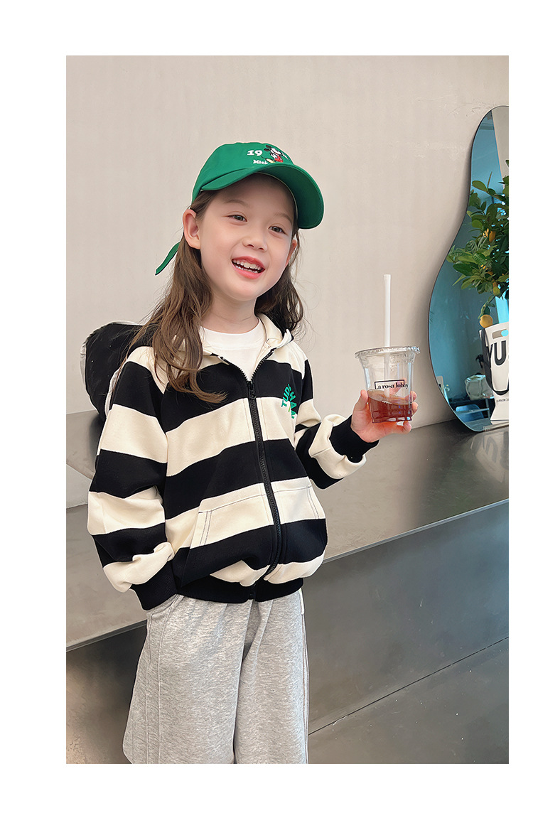 소녀 줄무늬 코트 어린이 스포츠 카디건 소녀의 서양식 탑 인형 큰 어린이 2025 봄 새로운 스타일스토어 가기