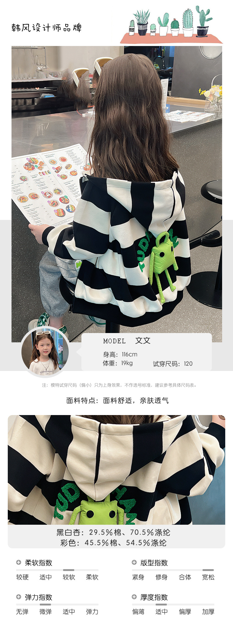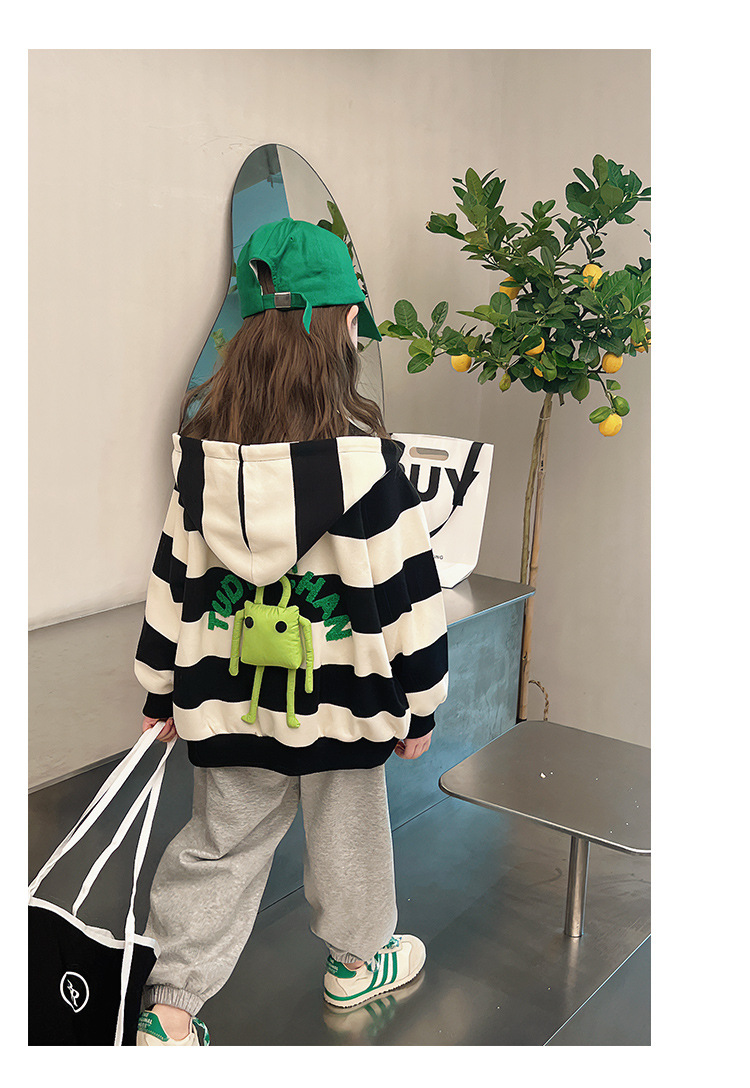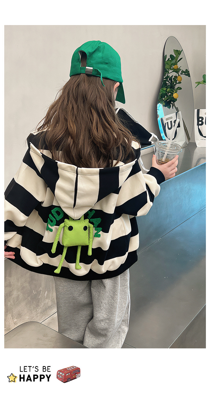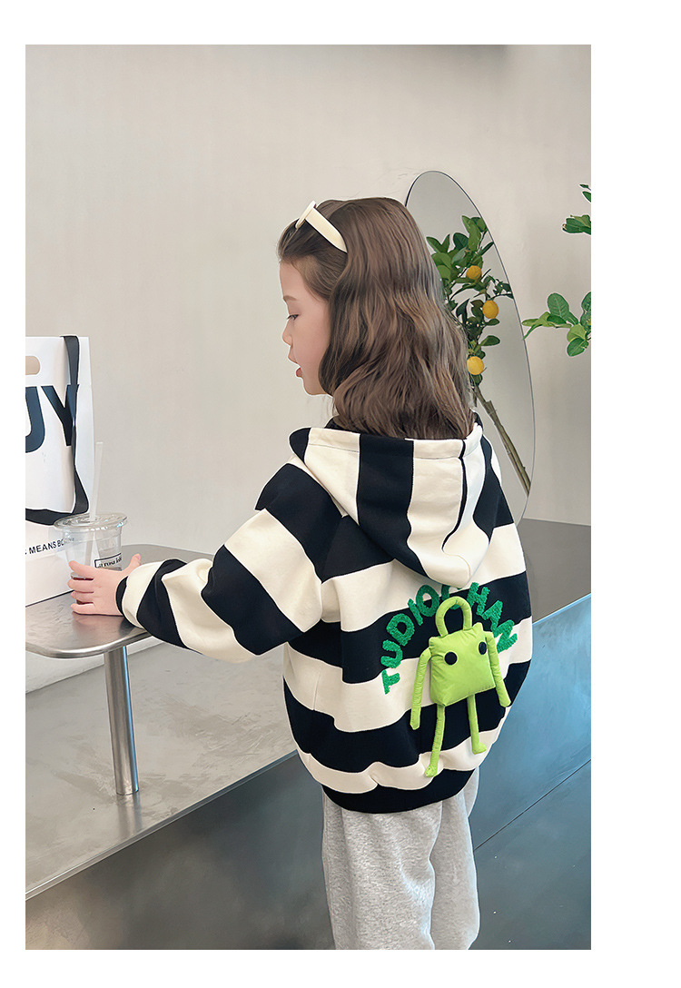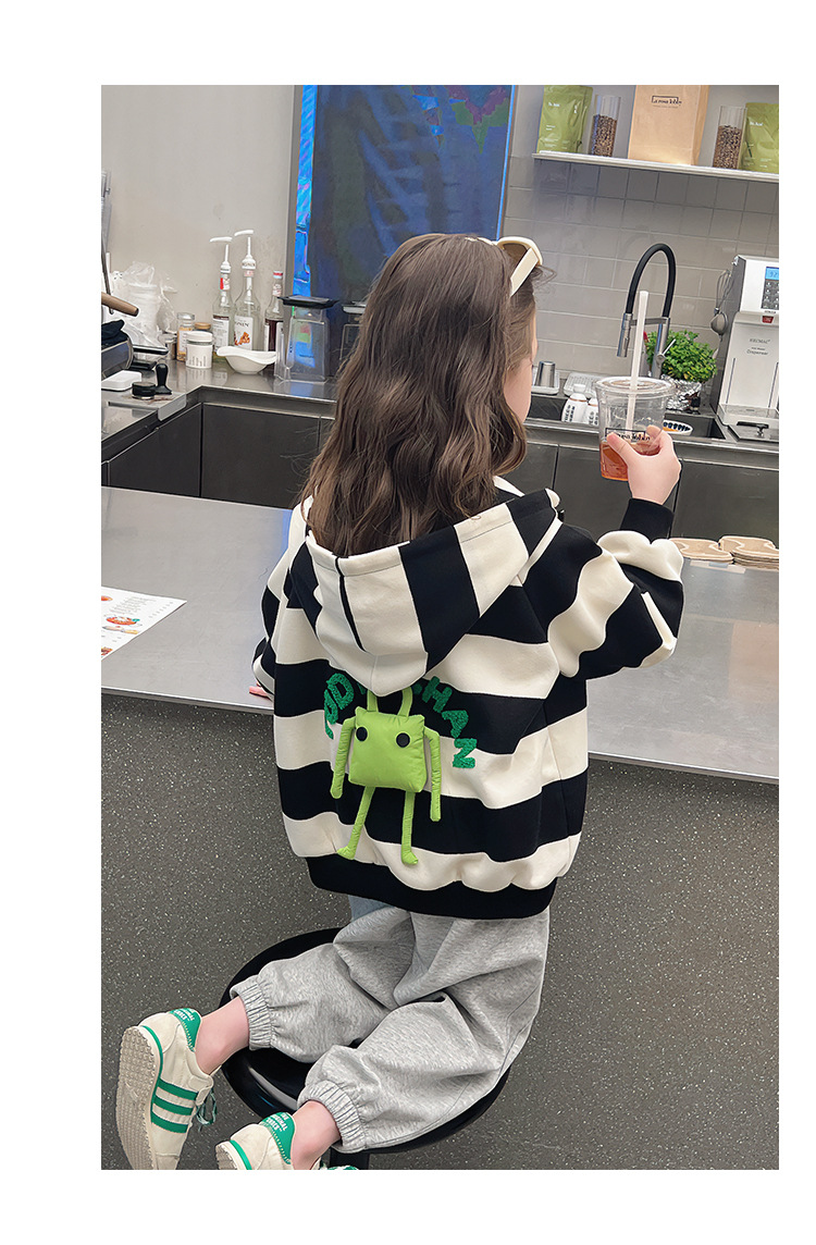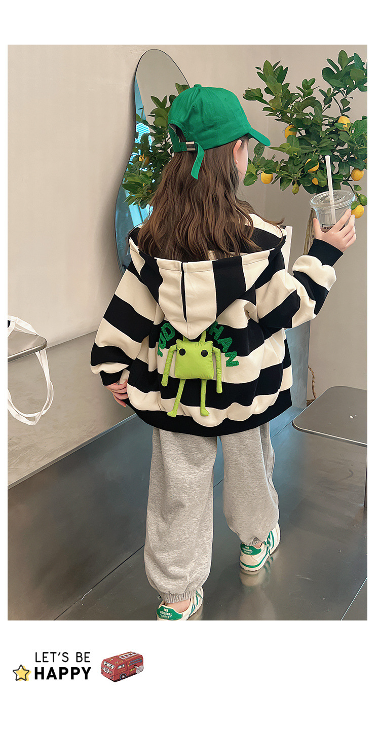 소녀 줄무늬 코트 어린이 스포츠 카디건 소녀의 서양식 탑 인형 큰 어린이 2025 봄 새로운 스타일스토어 가기
