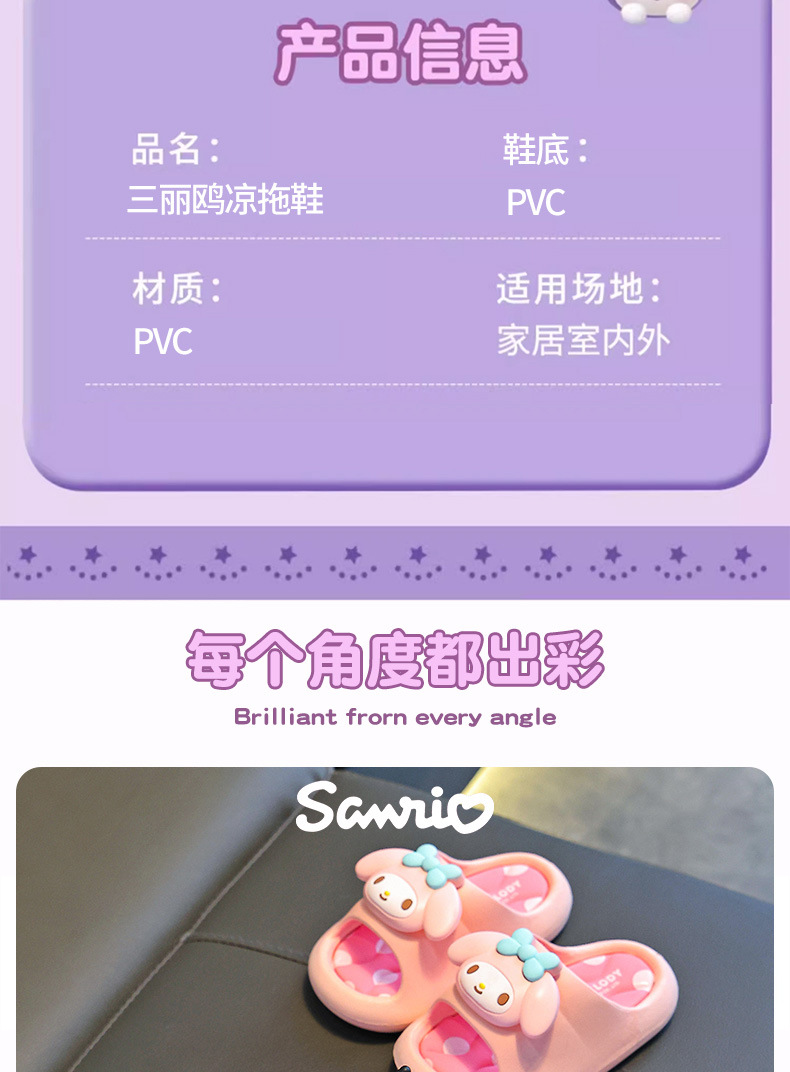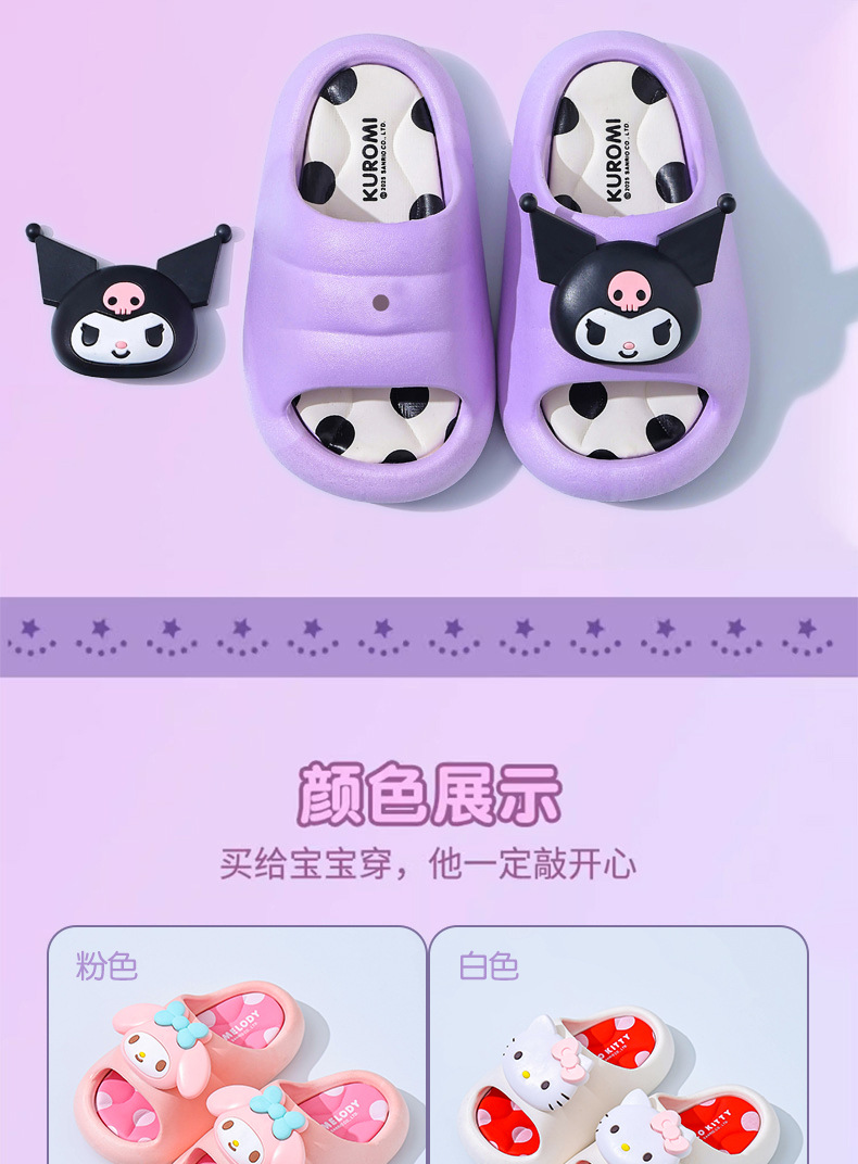 Sanrio 여름 어린이 샌들 소녀 2025 새로운 Kuromi 미끄럼 방지 중소 어린이 아기 목욕 샌들스토어 가기