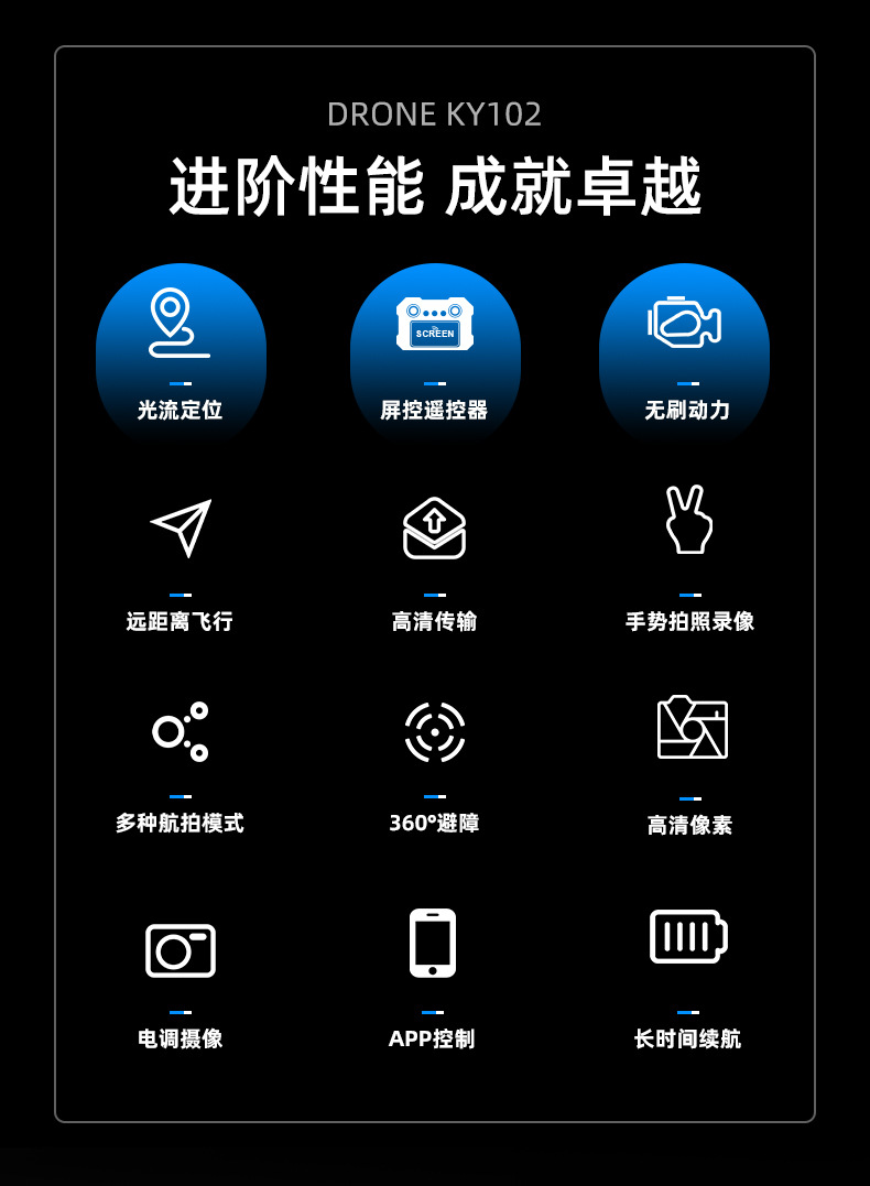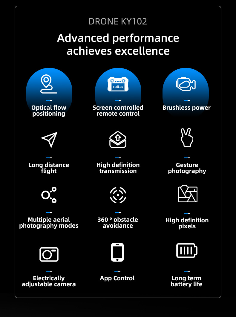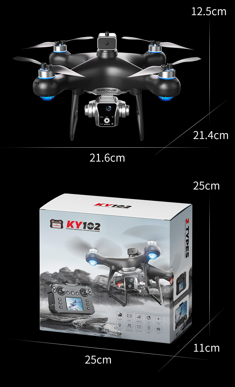 KY102 브러시리스 공중 UAV S116 실시간 화면 제어 디스플레이 리프팅 장애물 회피 광학 흐름 위치 원격 제어 항공기