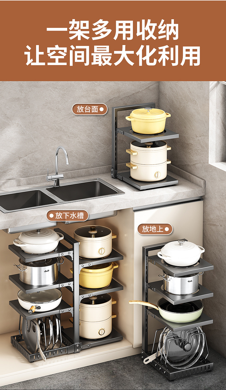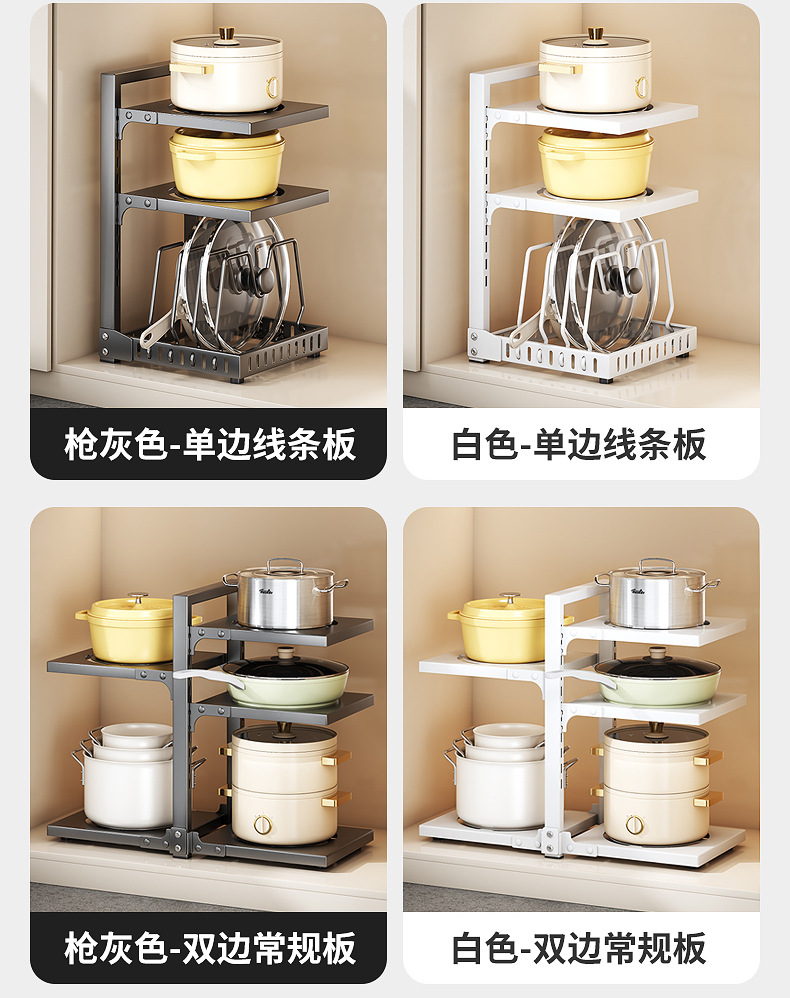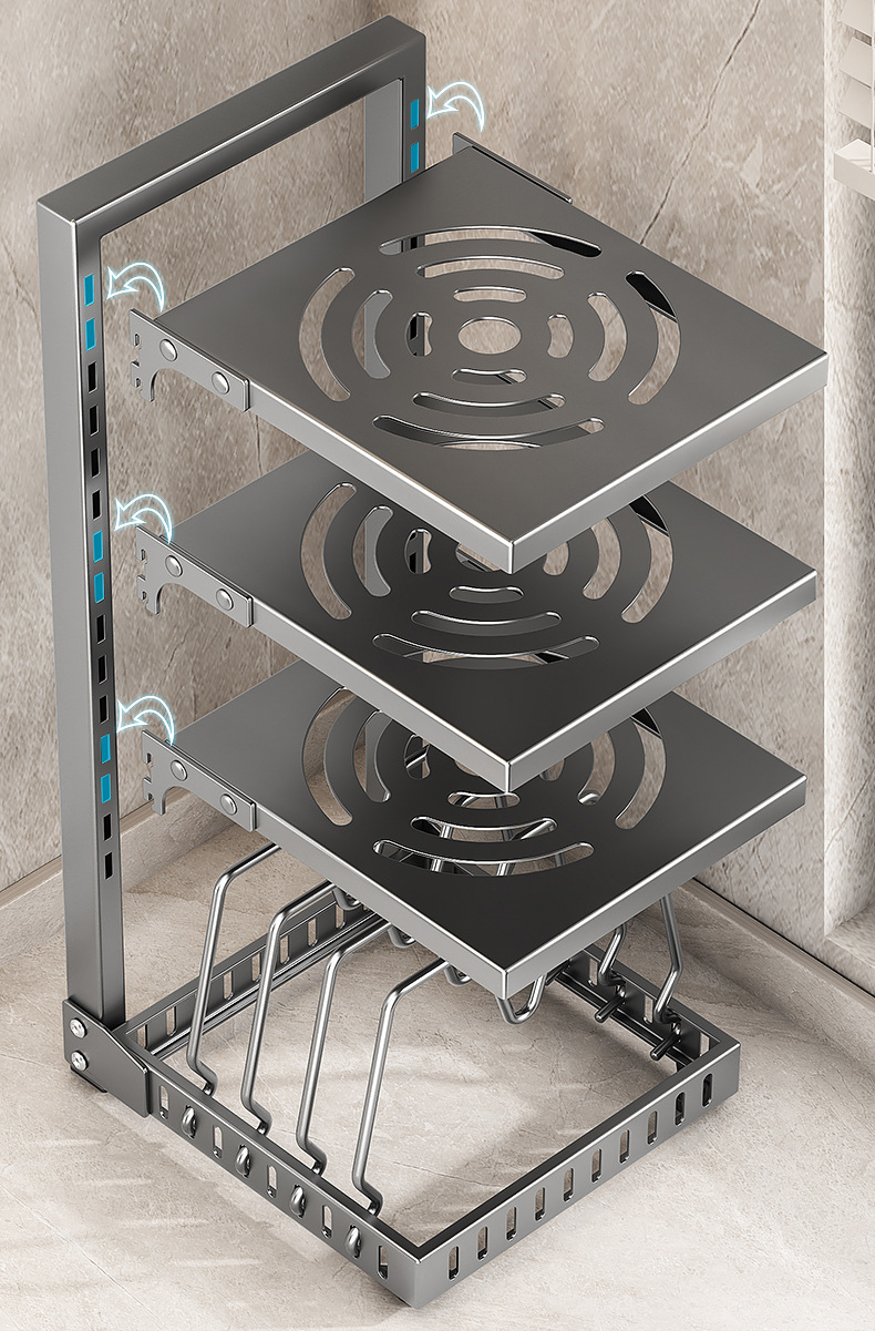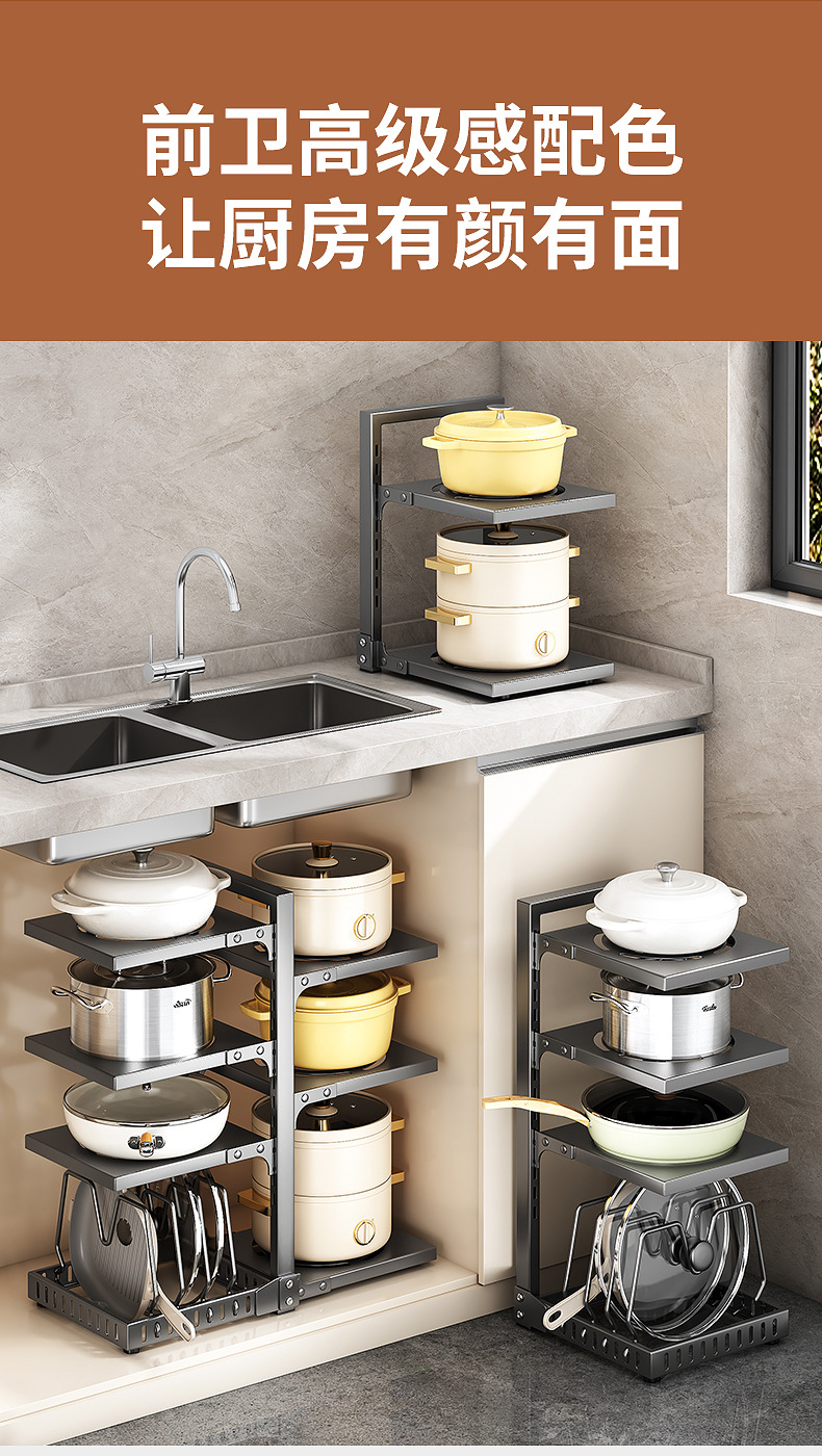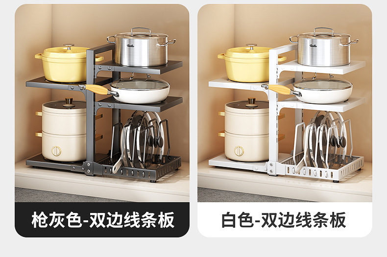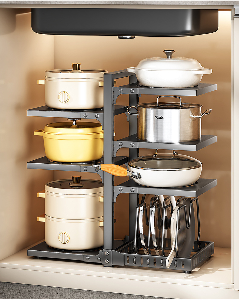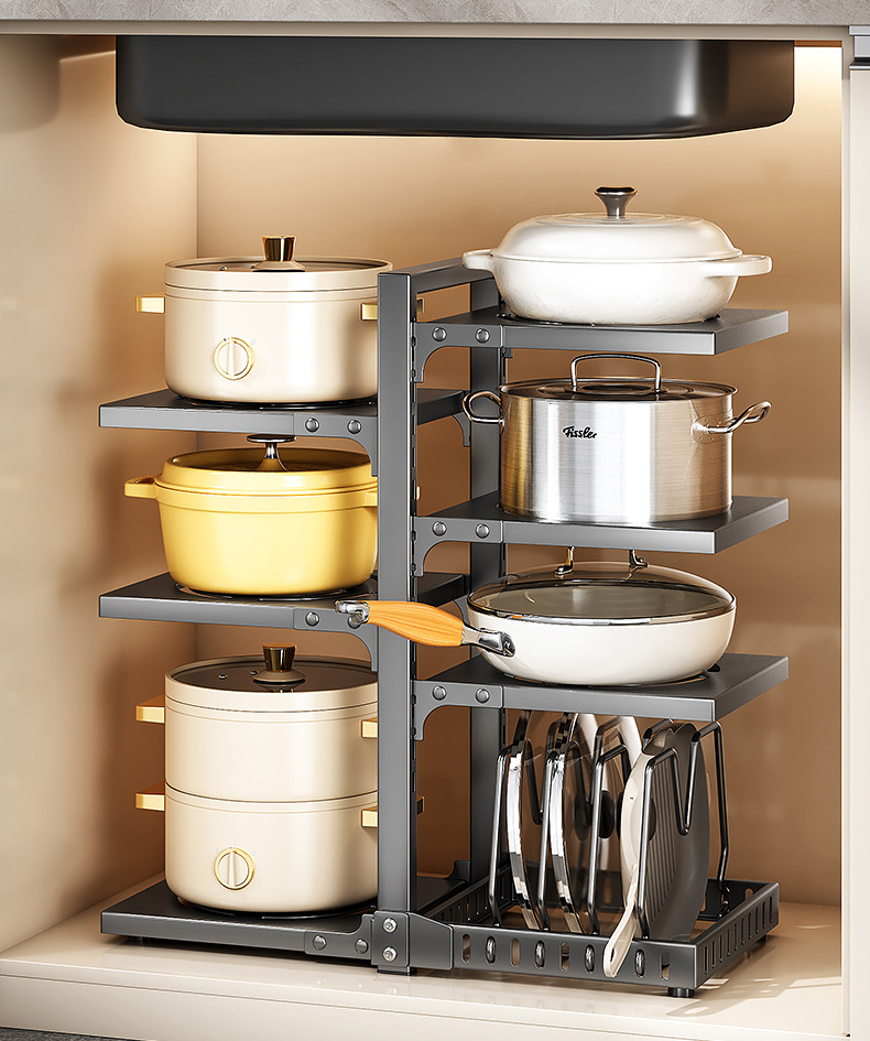 공장 직접 공급 싱크 캐비닛 조정 가능한 냄비 저장 랙 국경 주방 조리대 냄비 뚜껑 팬 저장