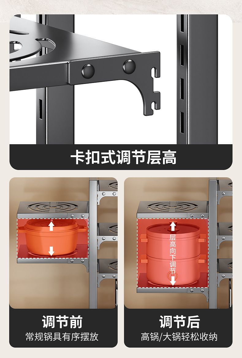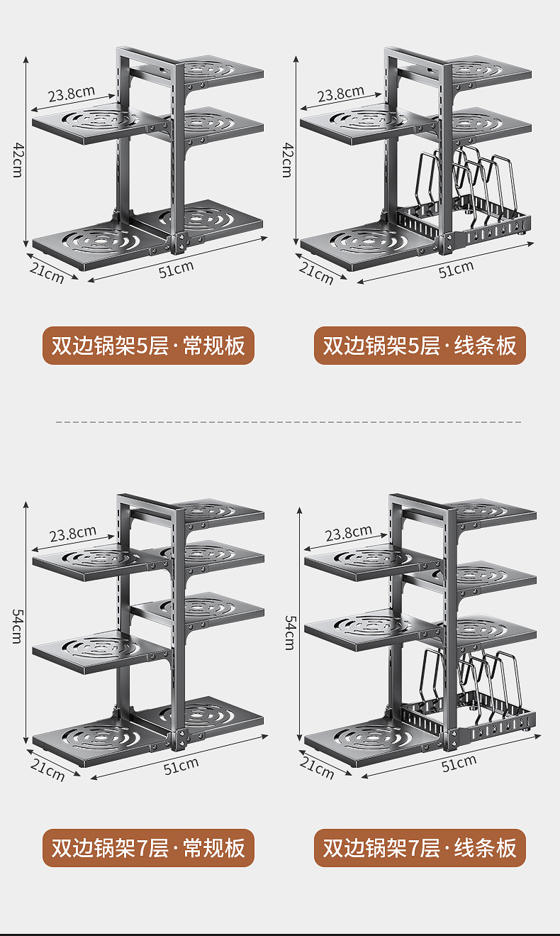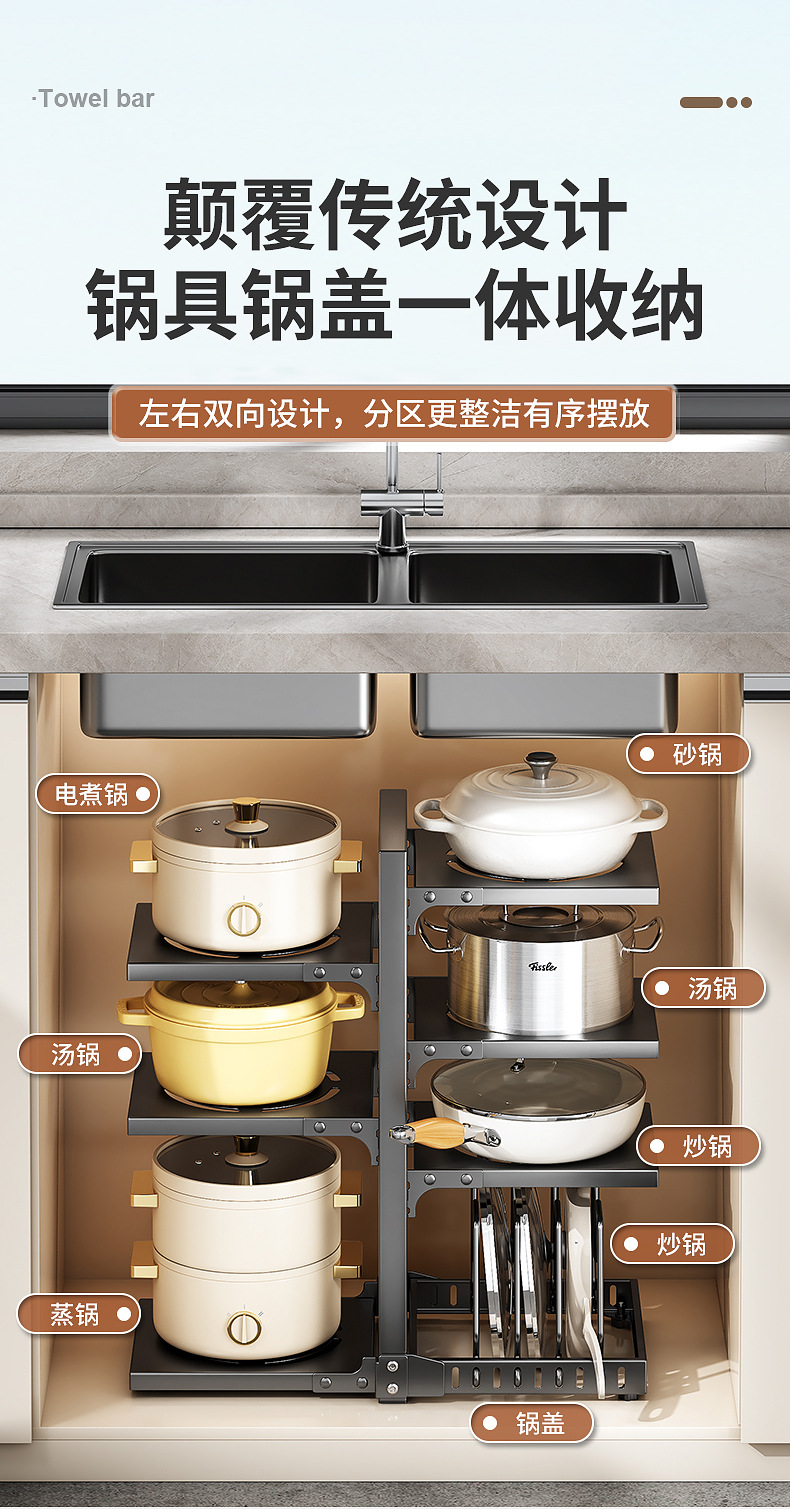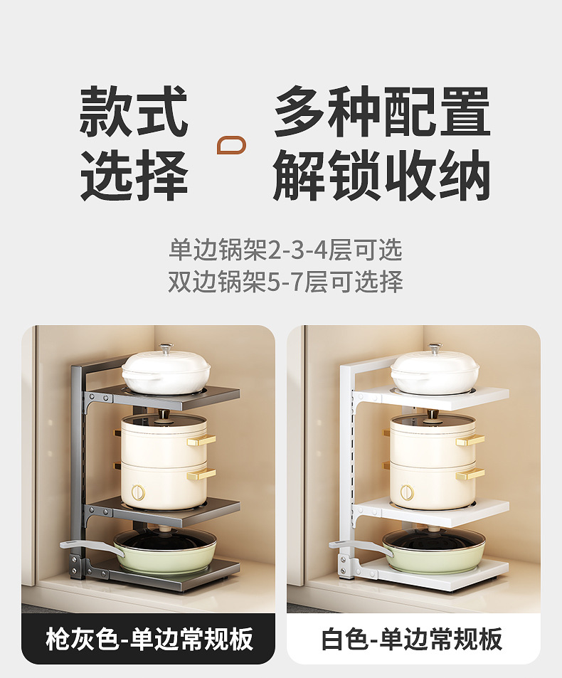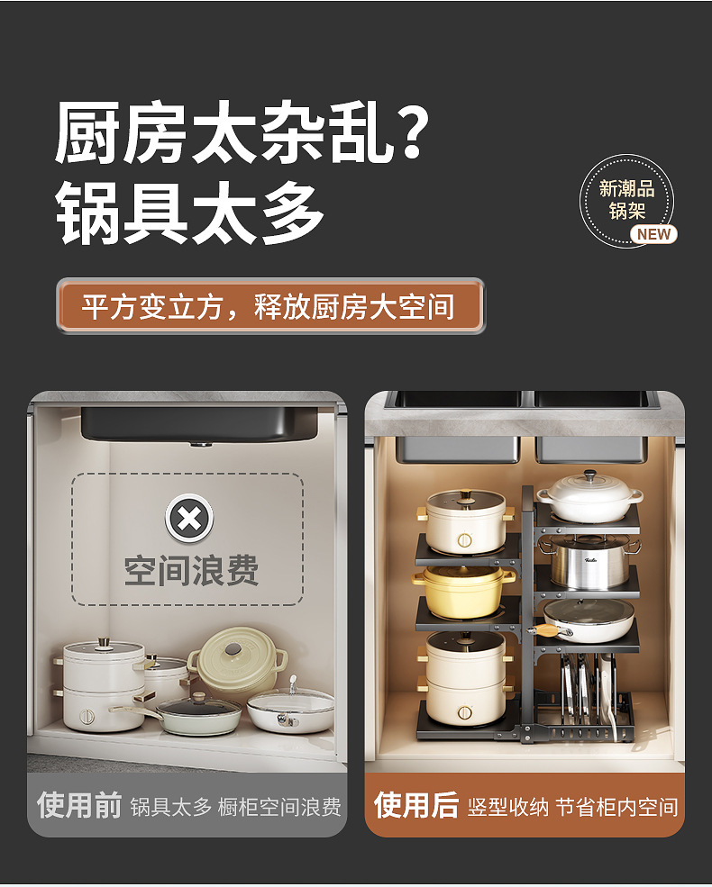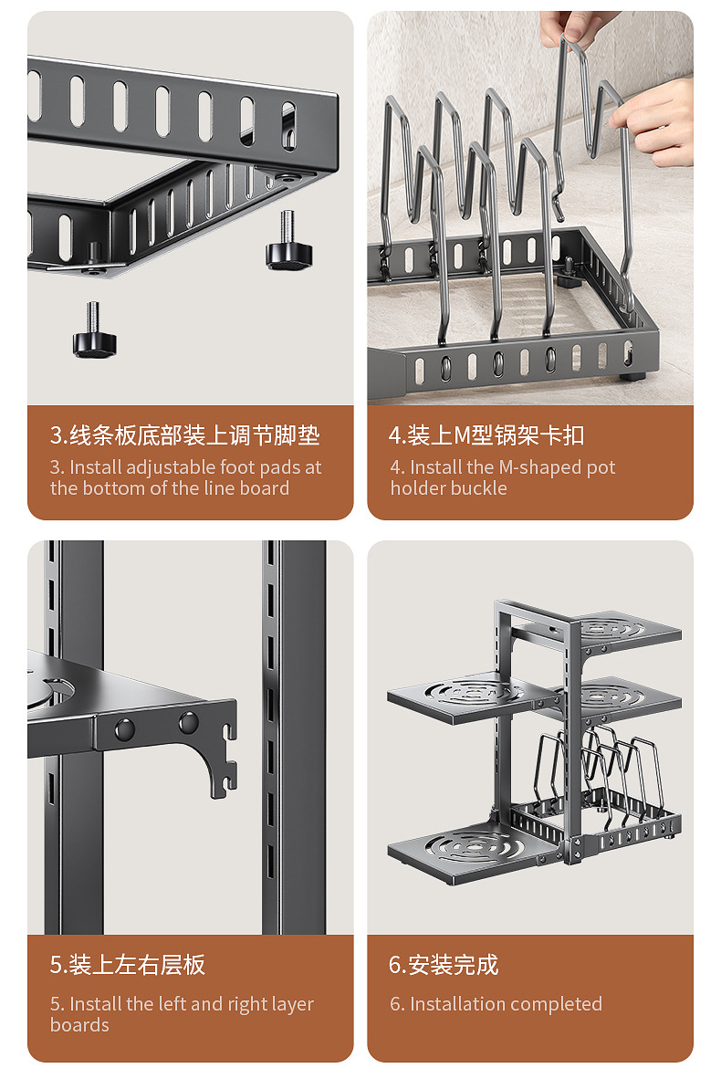 공장 직접 공급 싱크 캐비닛 조정 가능한 냄비 저장 랙 국경 주방 조리대 냄비 뚜껑 팬 저장