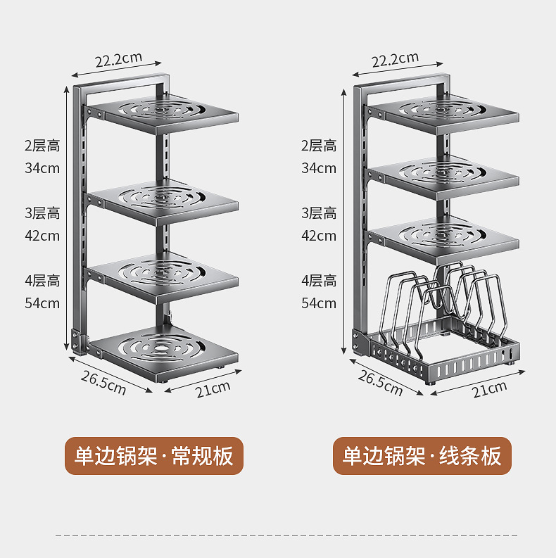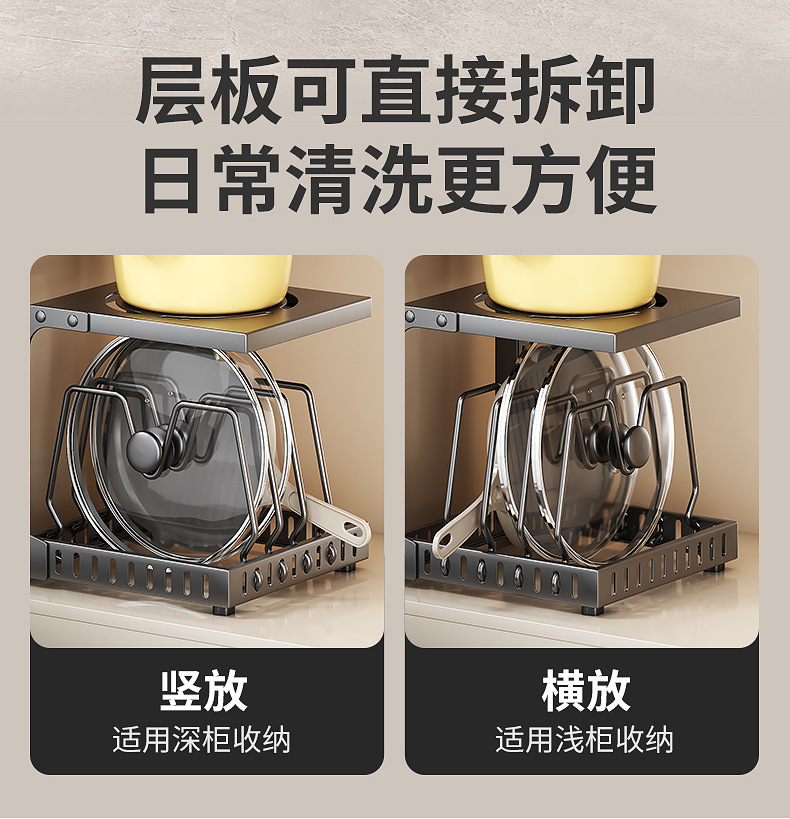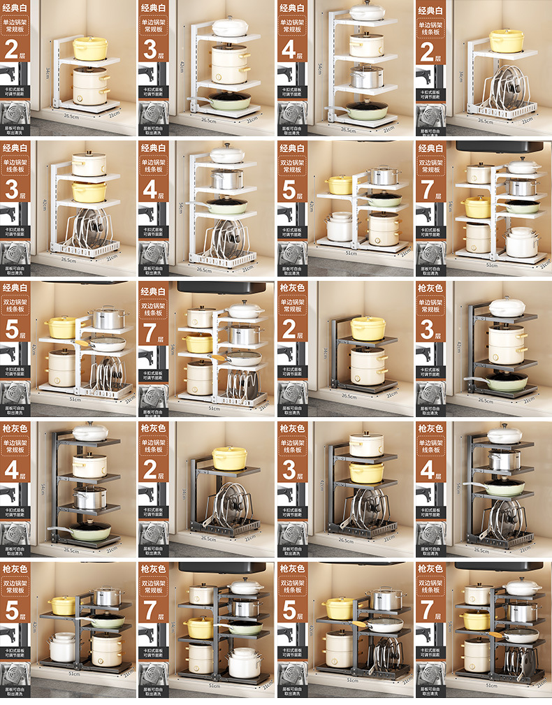 공장 직접 공급 싱크 캐비닛 조정 가능한 냄비 저장 랙 국경 주방 조리대 냄비 뚜껑 팬 저장스토어 가기
