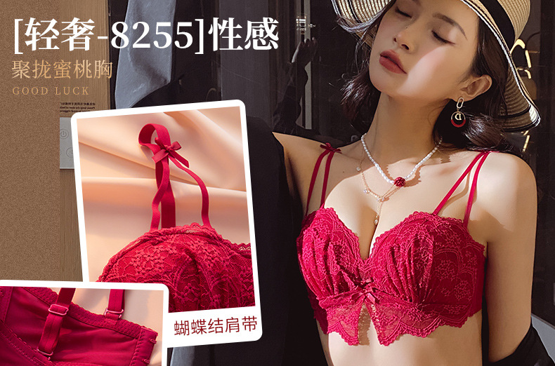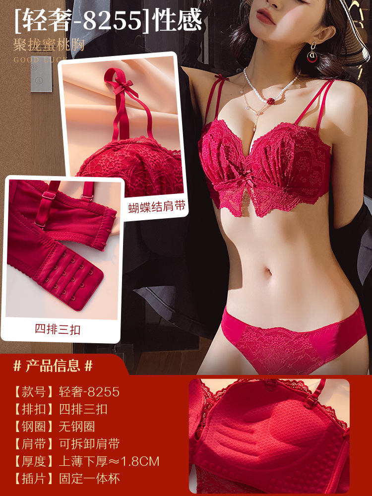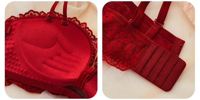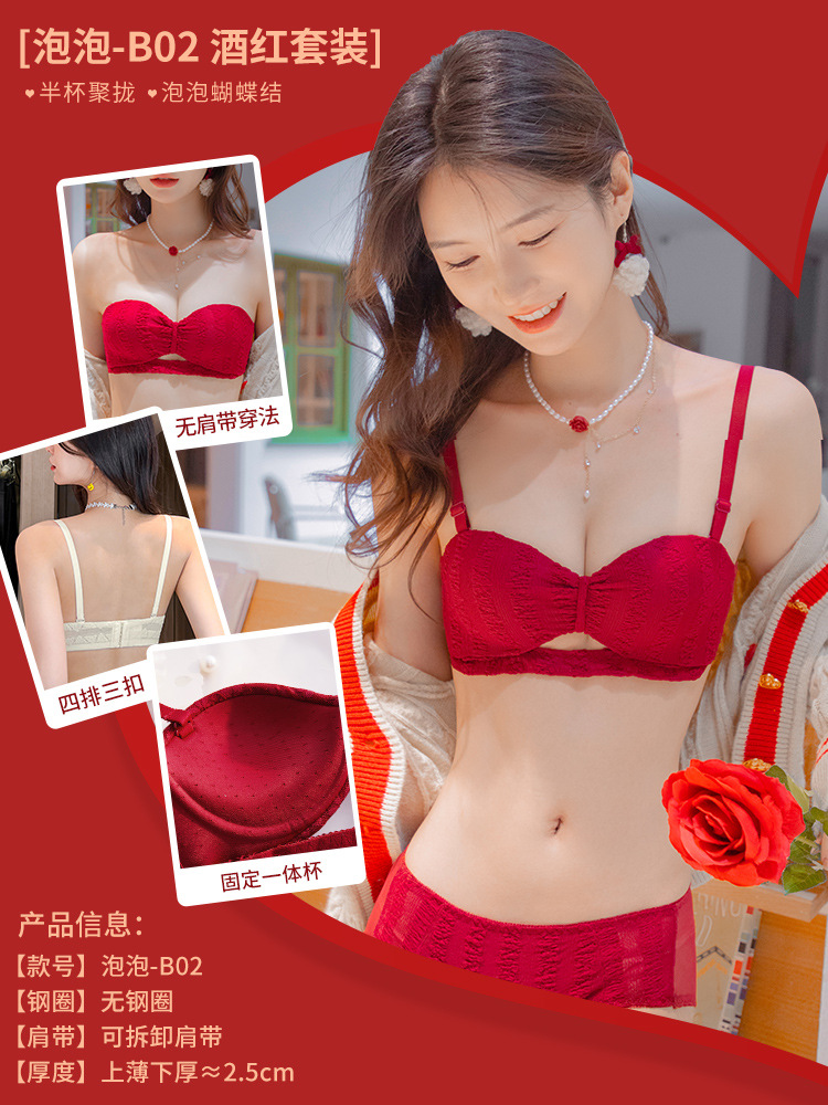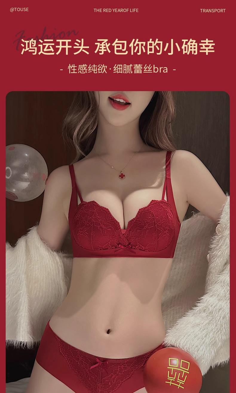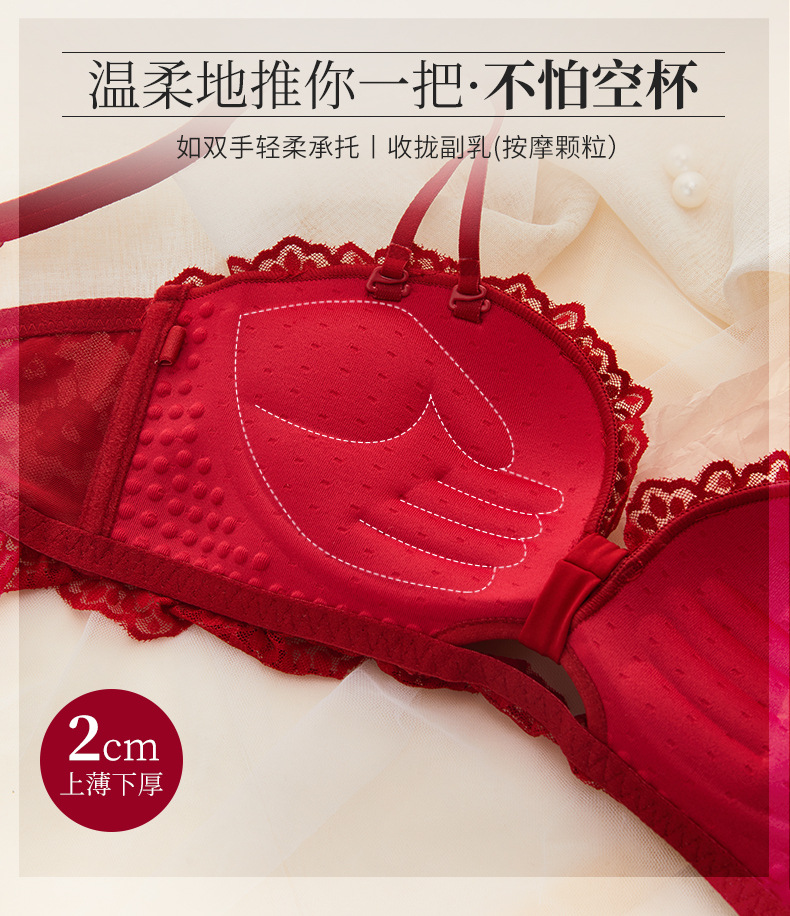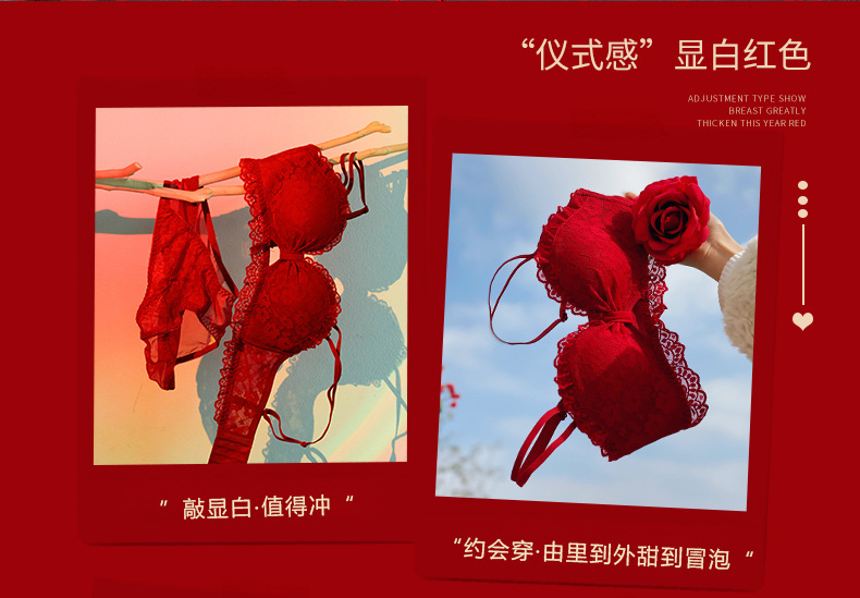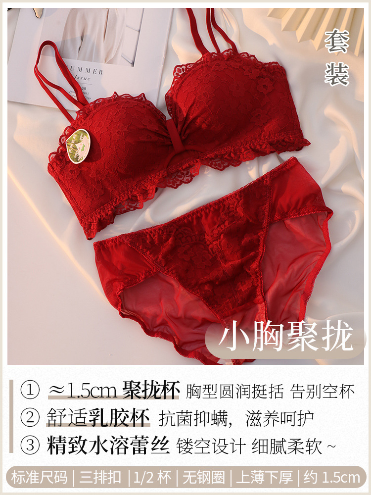 원래 정품 레드 시리즈 속옷 여자 뱀 결혼식 신부의 작은 가슴 푸시 업 브라 속옷 세트