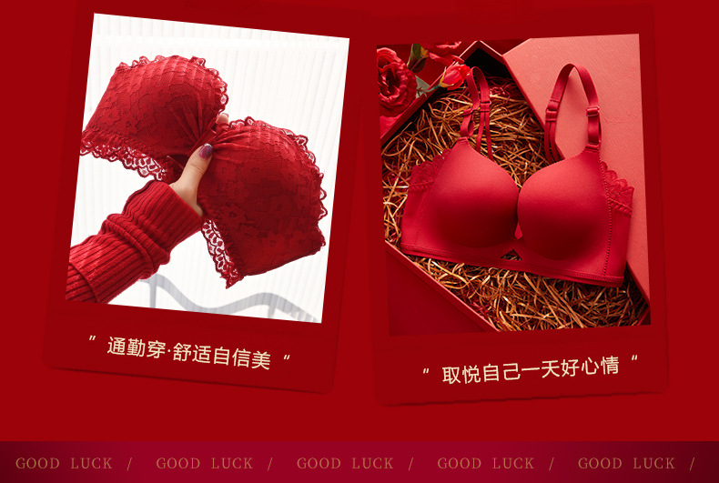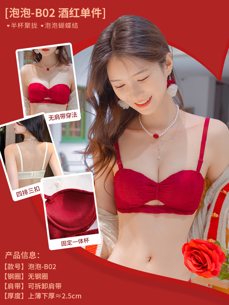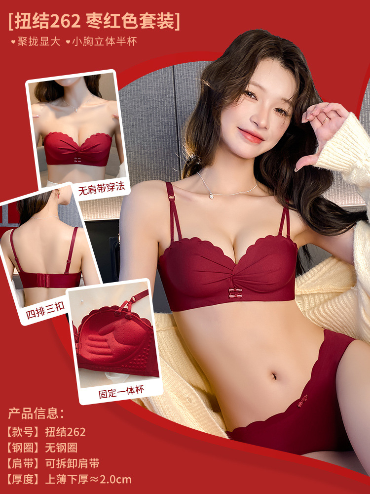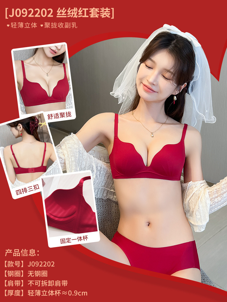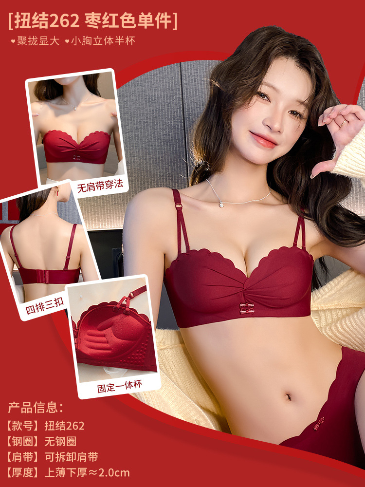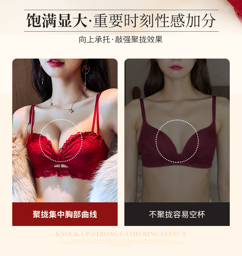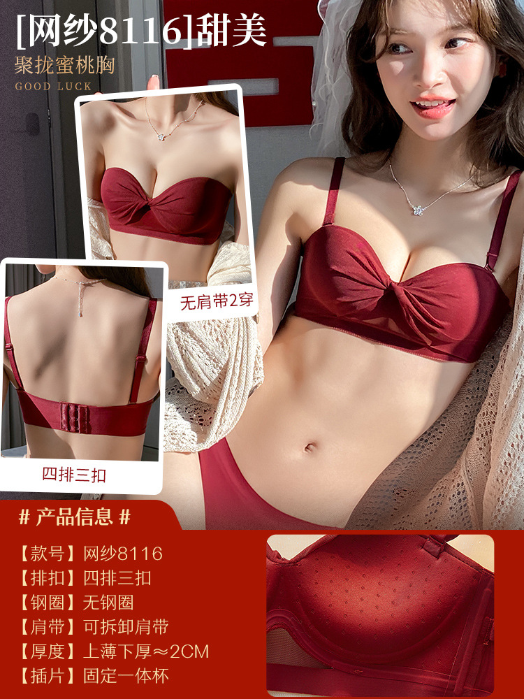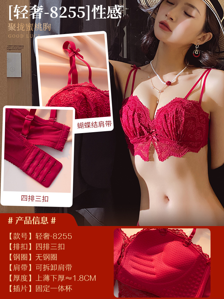 원래 정품 레드 시리즈 속옷 여자 뱀 결혼식 신부의 작은 가슴 푸시 업 브라 속옷 세트