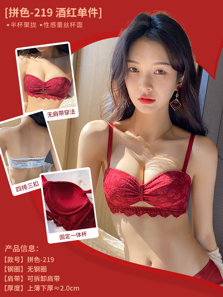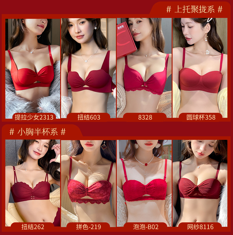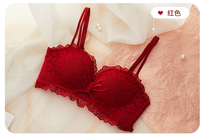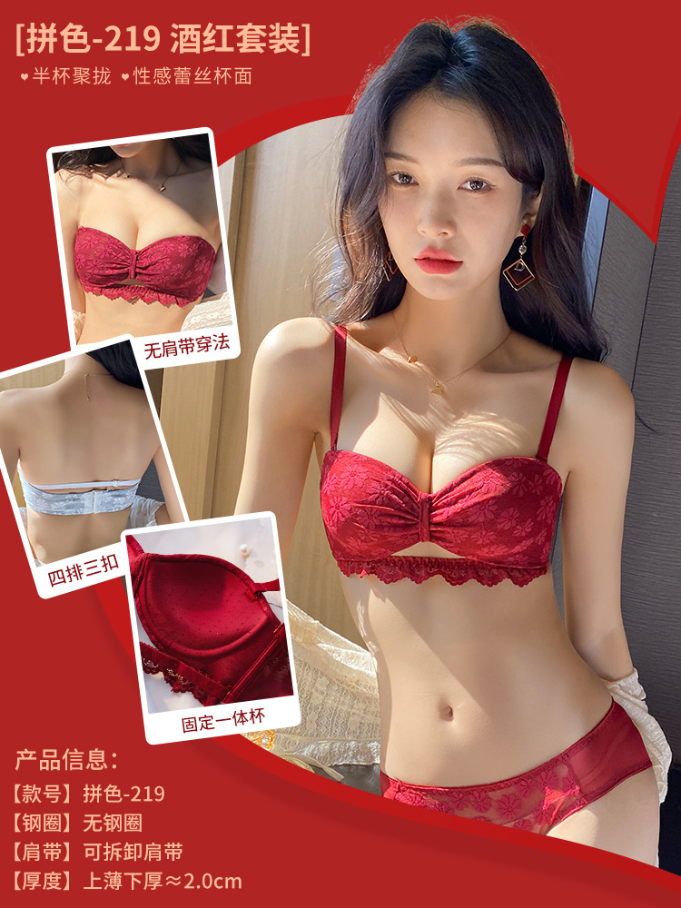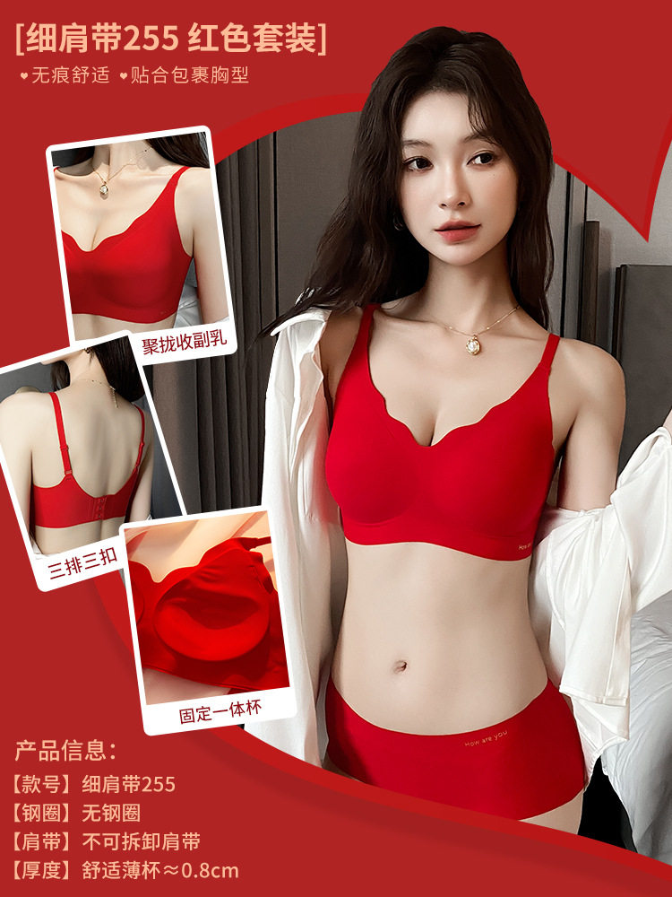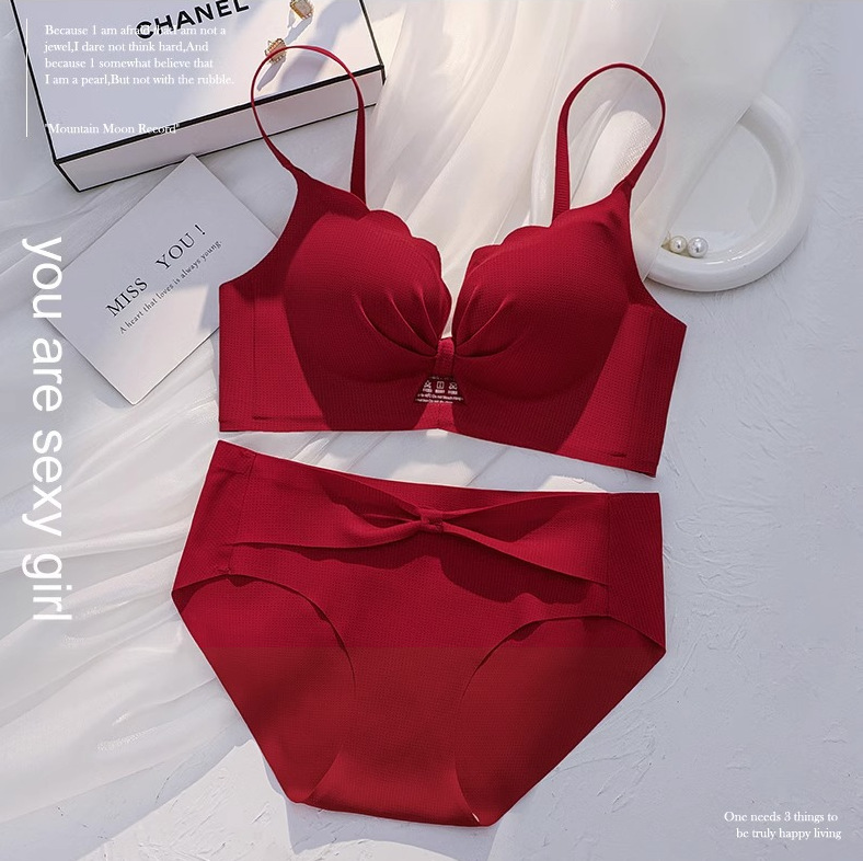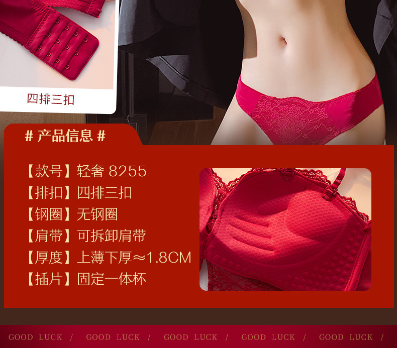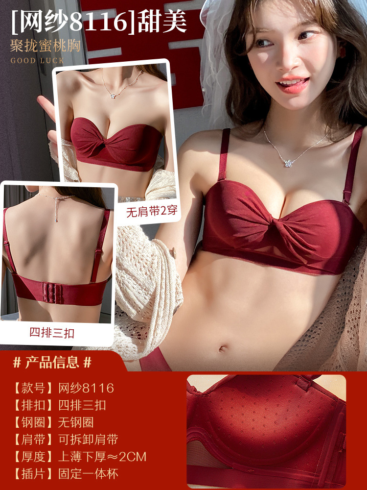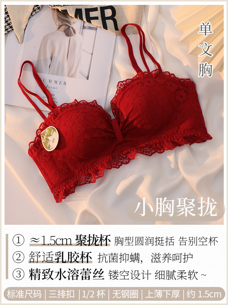 원래 정품 레드 시리즈 속옷 여자 뱀 결혼식 신부의 작은 가슴 푸시 업 브라 속옷 세트