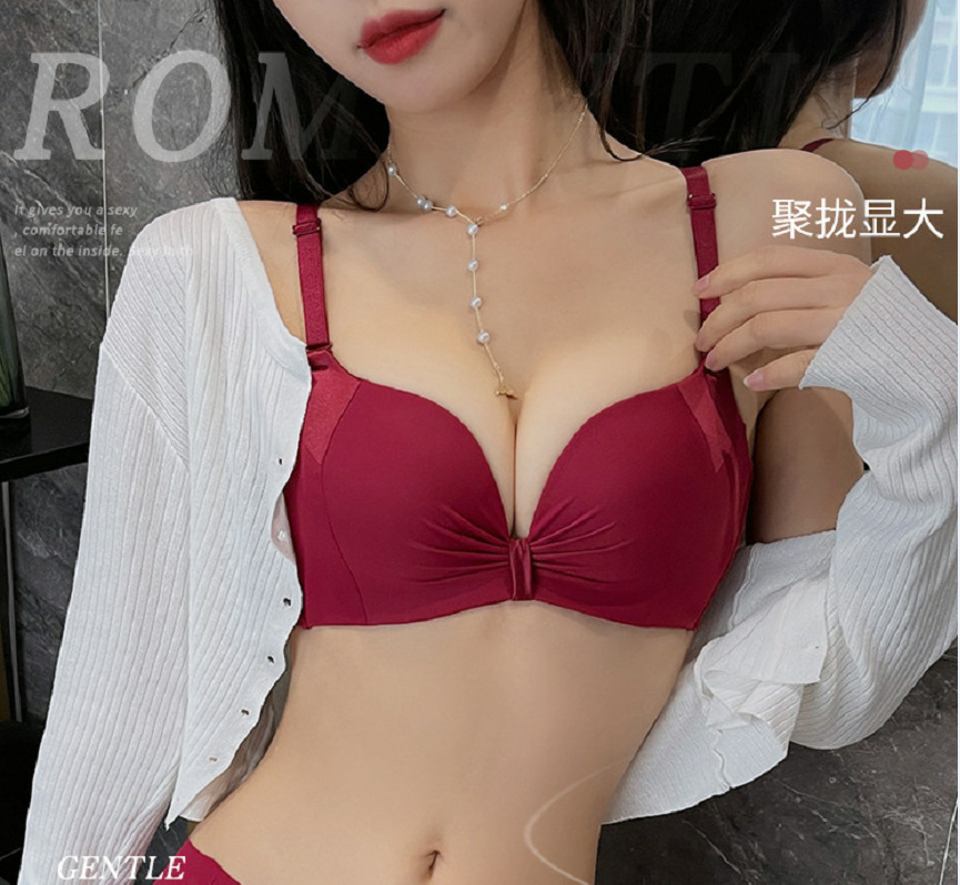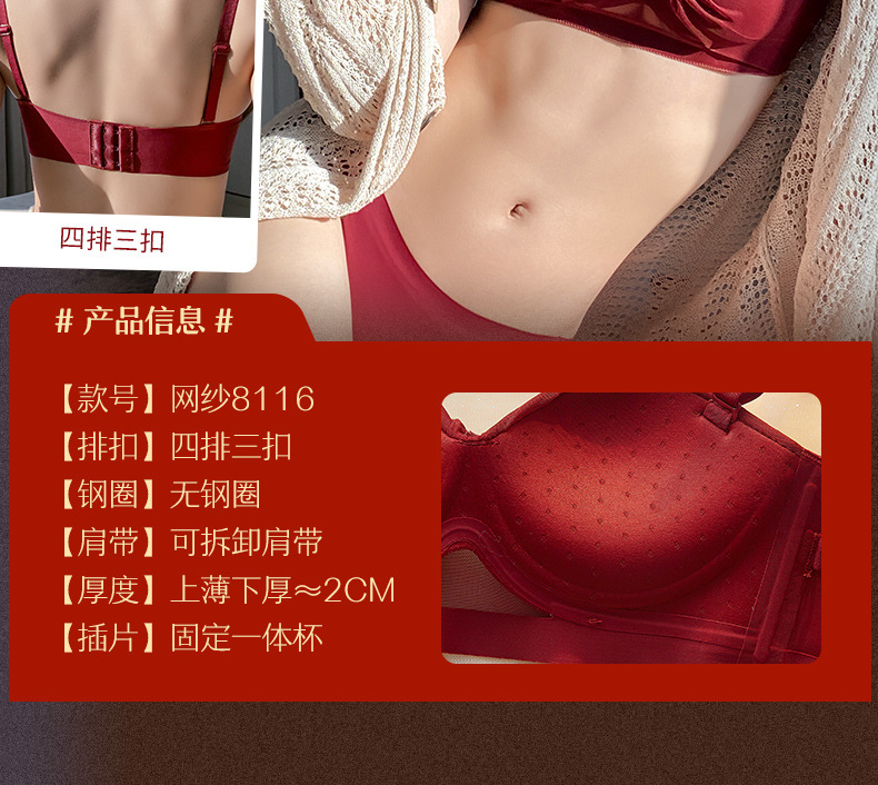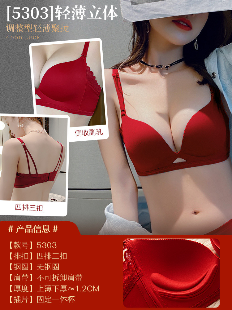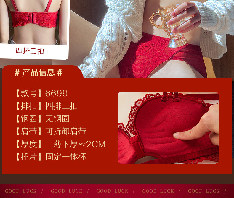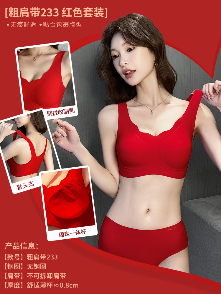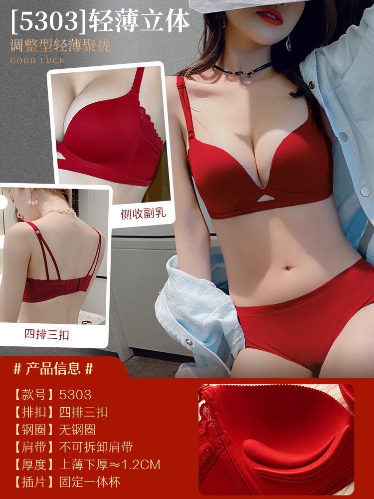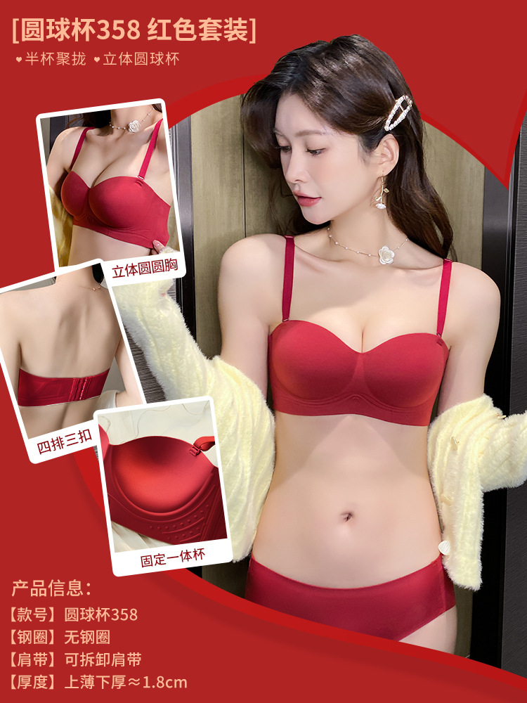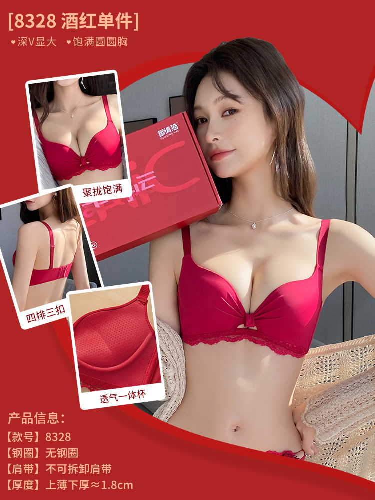 원래 정품 레드 시리즈 속옷 여자 뱀 결혼식 신부의 작은 가슴 푸시 업 브라 속옷 세트