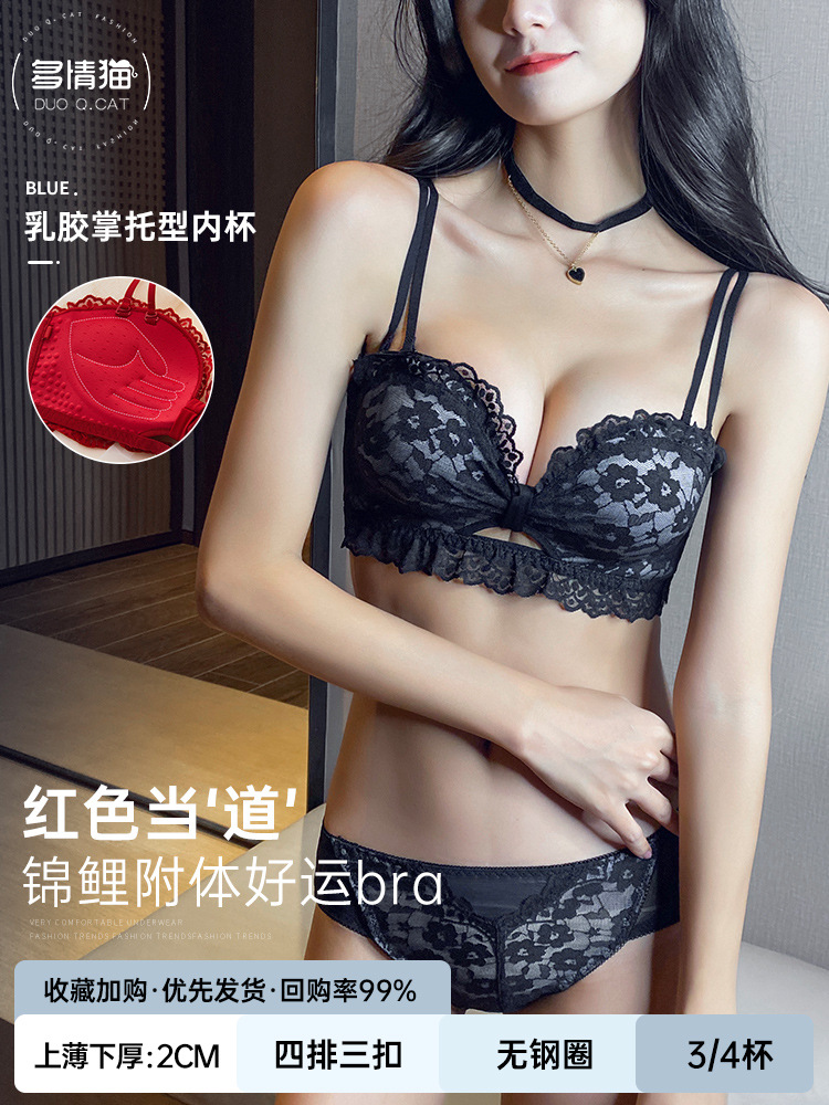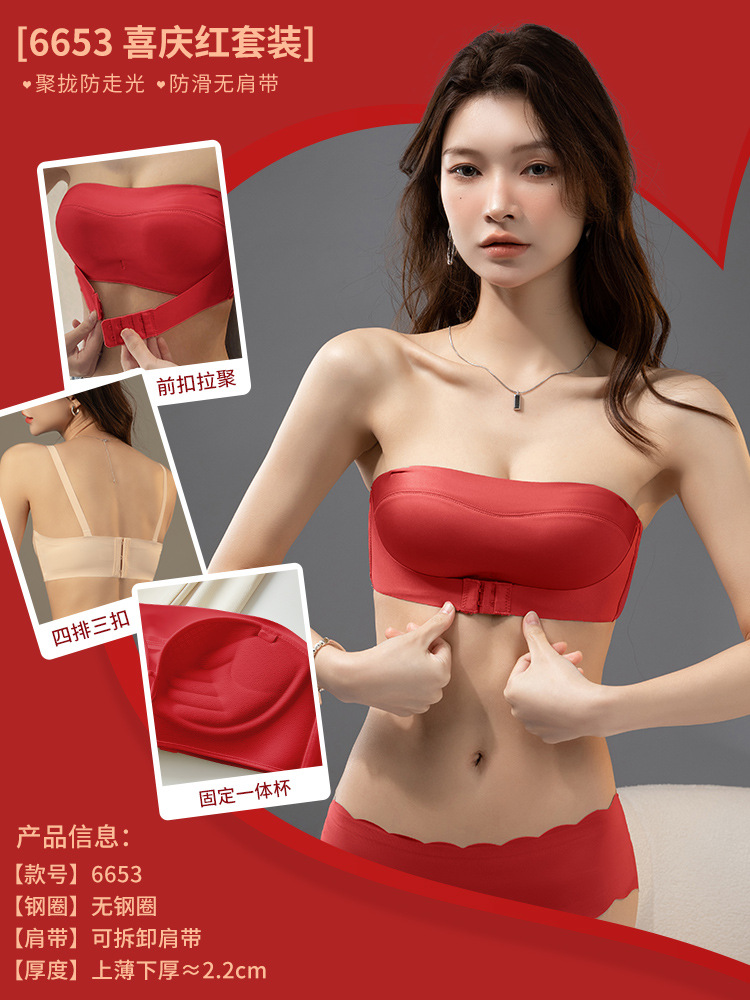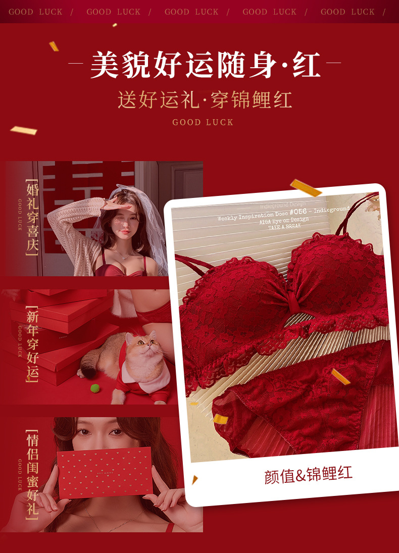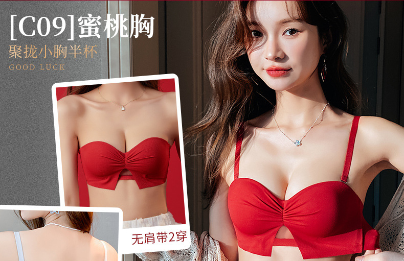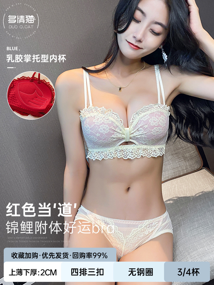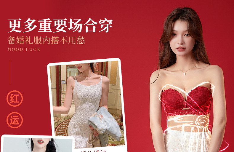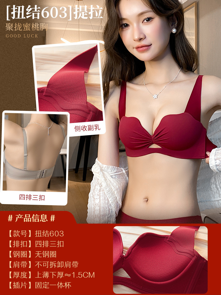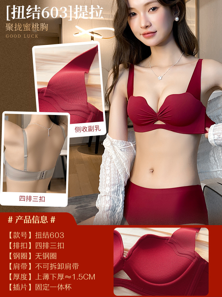 원래 정품 레드 시리즈 속옷 여자 뱀 결혼식 신부의 작은 가슴 푸시 업 브라 속옷 세트