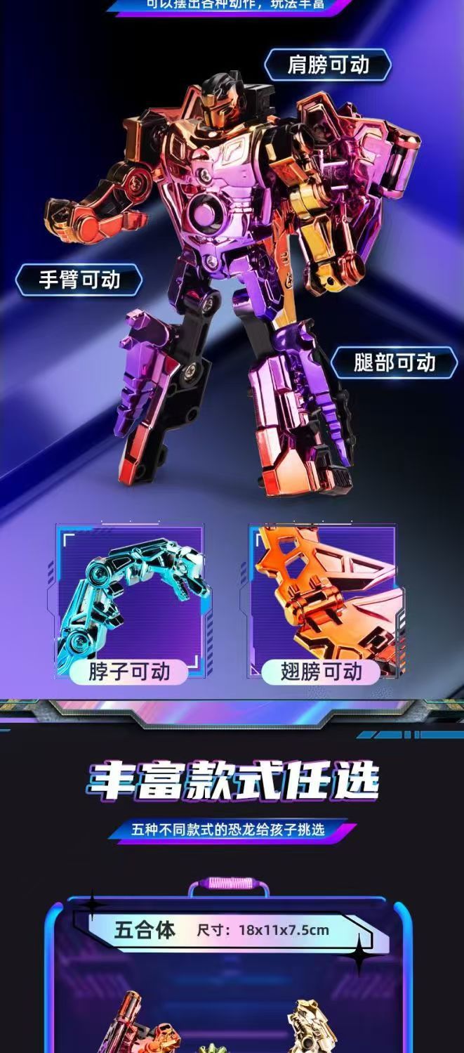 • 전기 도금 합금 변형 [공룡 5종 풀 세트 - 결합 가능 - 선물 상자] 무료 인지 카드