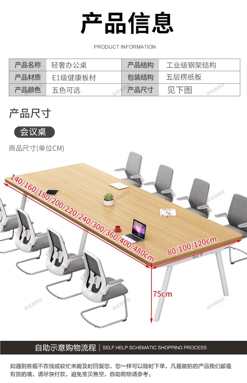 회의 테이블 긴 테이블 간단한 작업대 긴 테이블 직사각형 큰 테이블 사무실 책상 협상 테이블과 의자 조합스토어 가기
