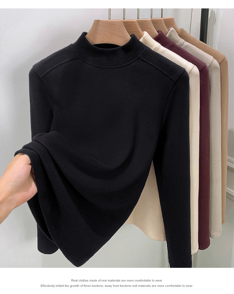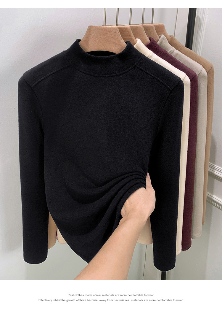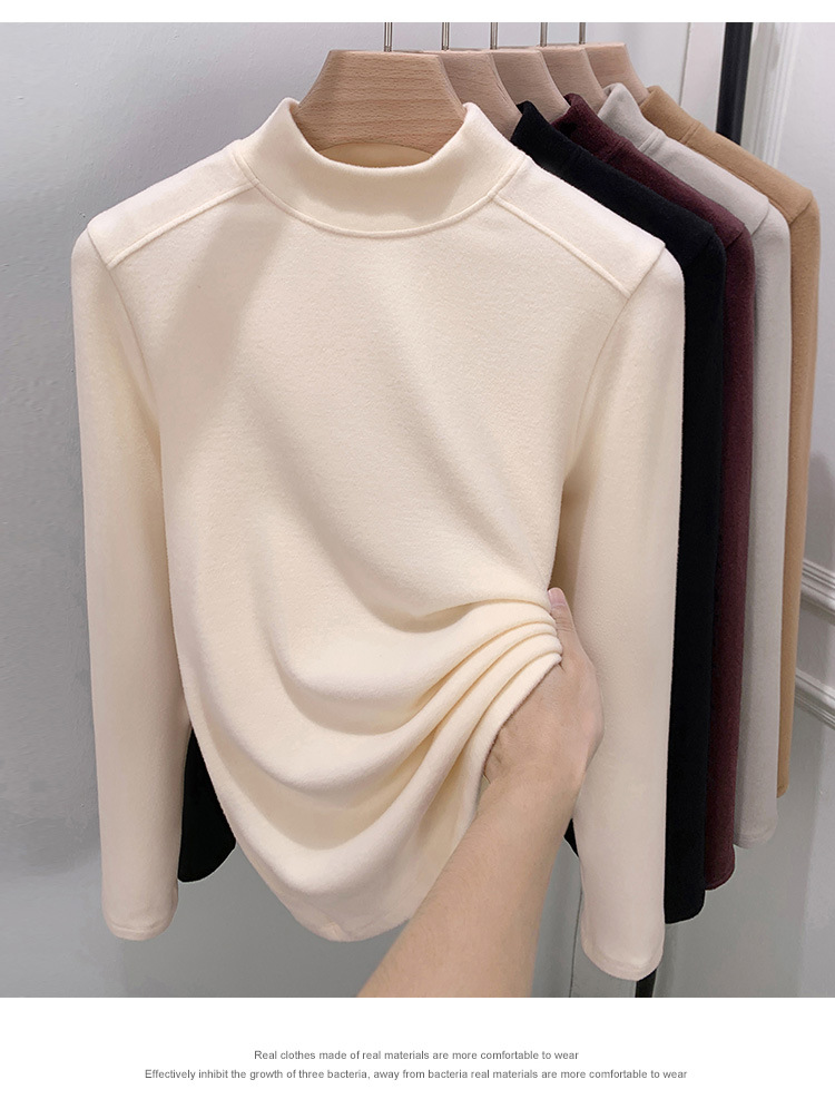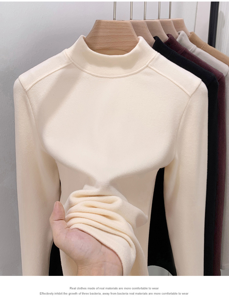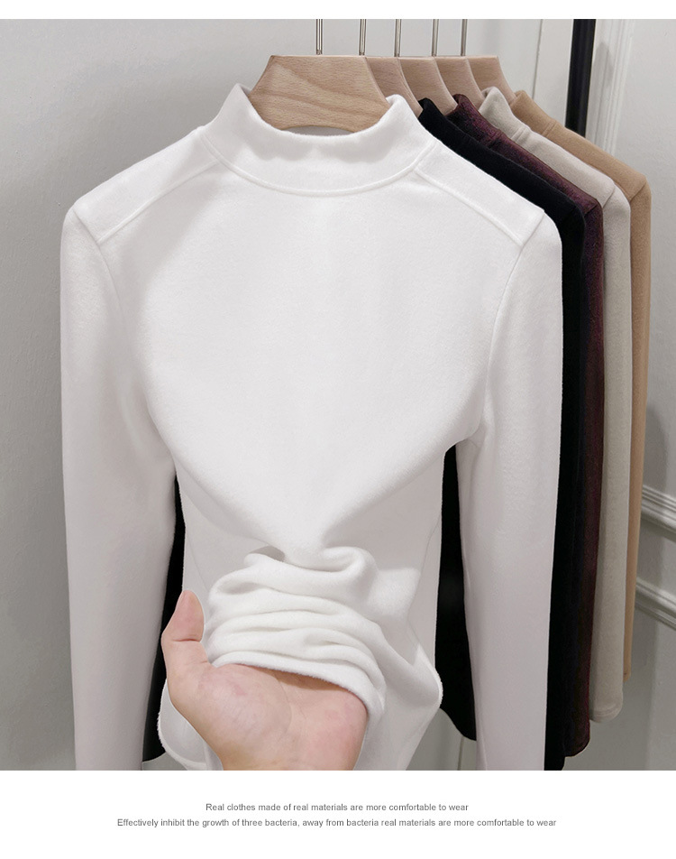 따뜻한 슬림 슬림 슬림 작은 칼라 긴 소매 티셔츠 여성베이스 셔츠 안에 가을과 겨울 독일 벨벳 세대