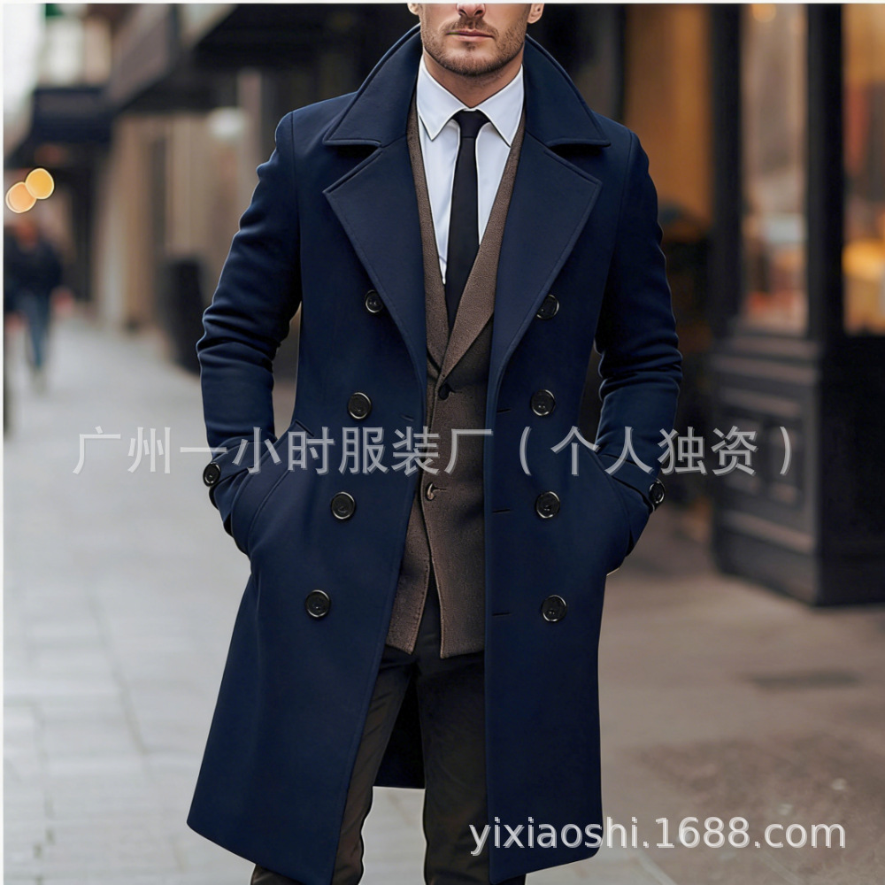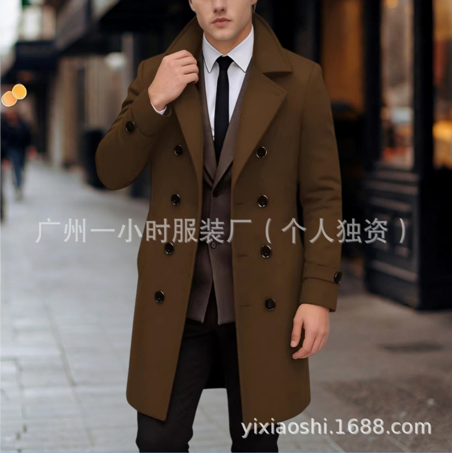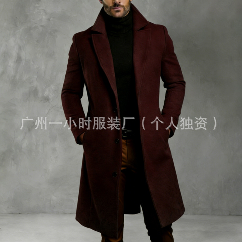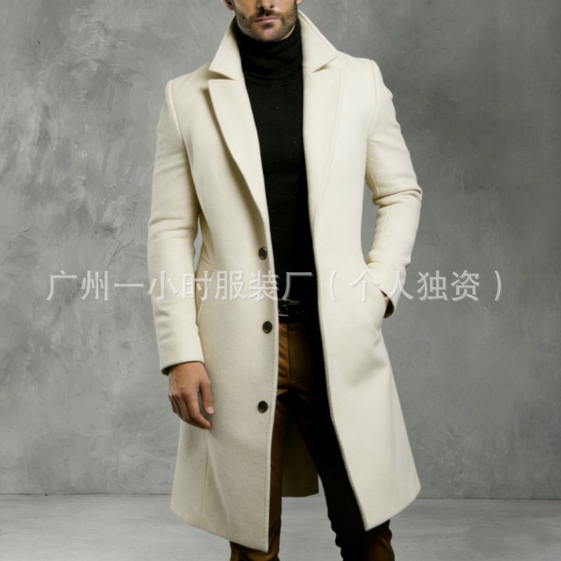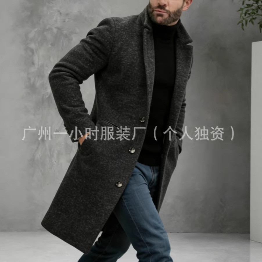 【다양한 색상 및 사이즈】해외 독립 스탠드 신상품 모직 남성 코트, 중간 길이의 모직 윈드브레이커 재킷, 재고 있음스토어 가기