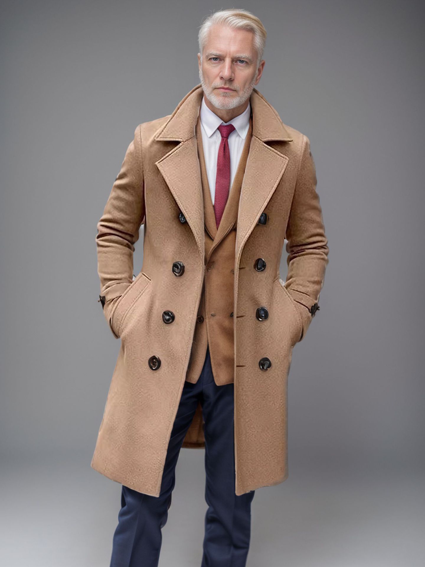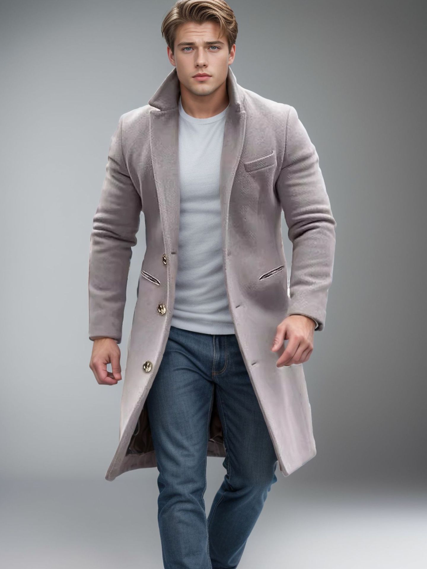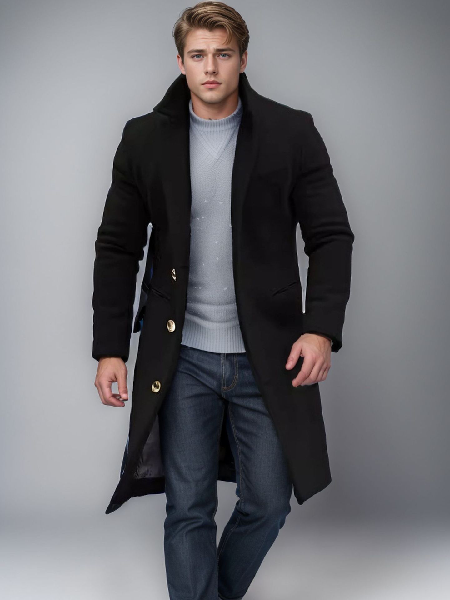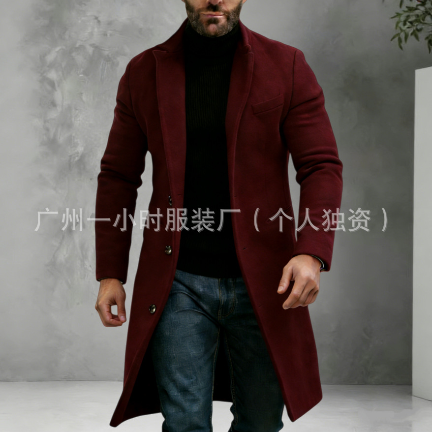 【다양한 색상 및 사이즈】해외 독립 스탠드 신상품 모직 남성 코트, 중간 길이의 모직 윈드브레이커 재킷, 재고 있음