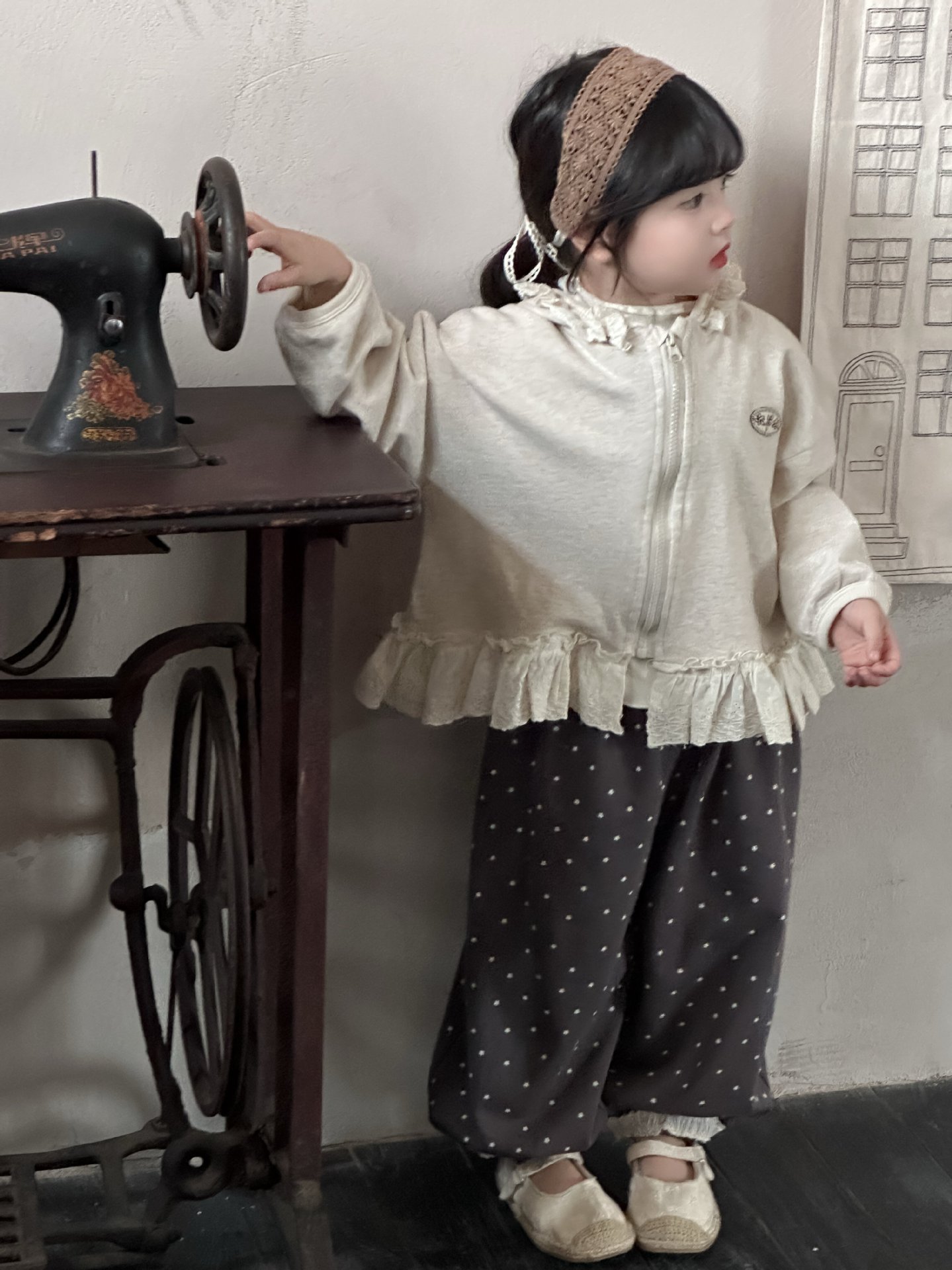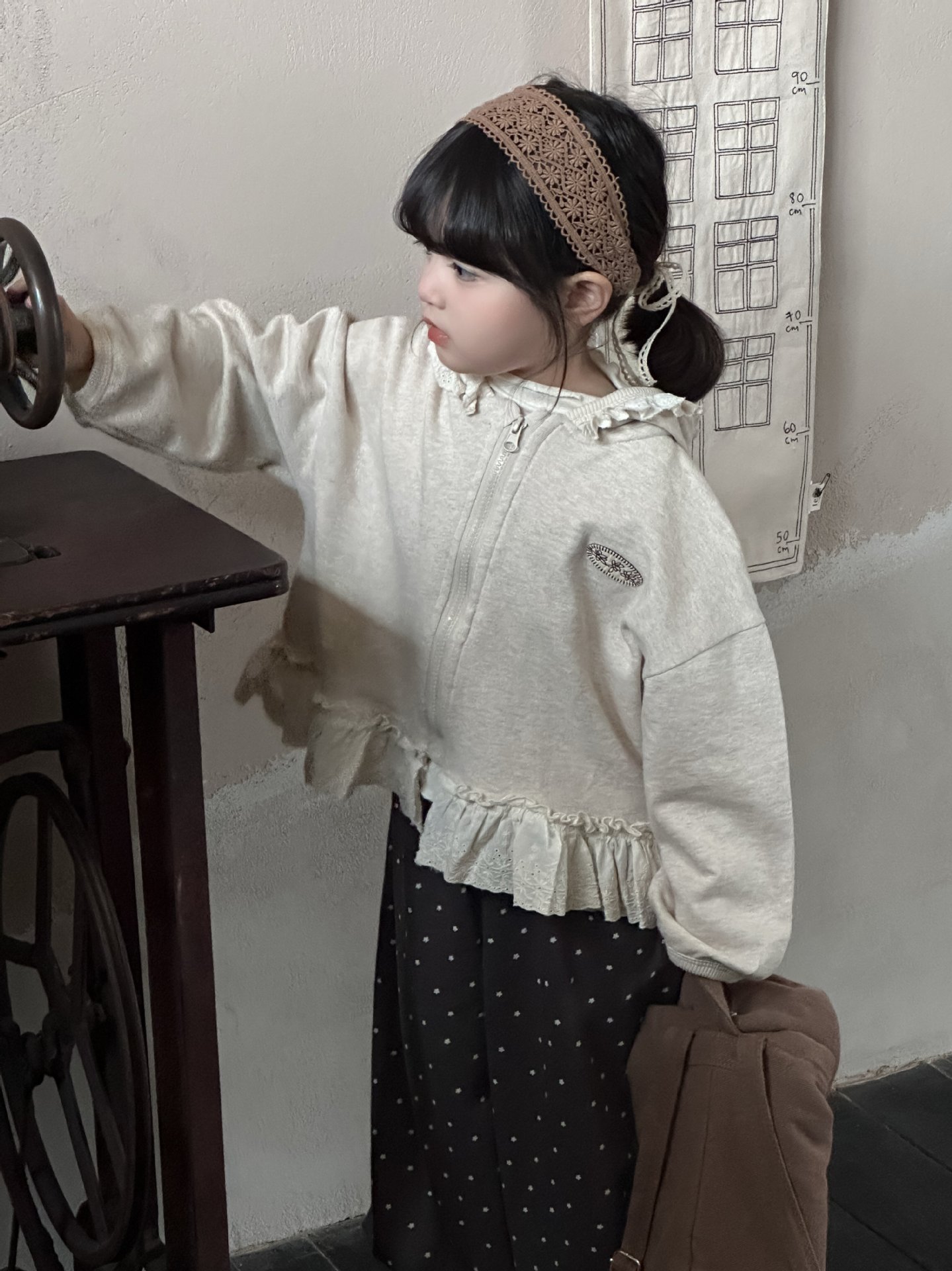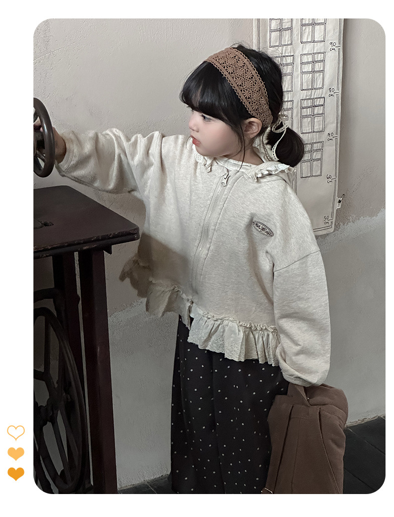 목지카 레트로 후드 재킷 2025 봄 신상 여아용 패셔너블한 레이스 지퍼 여아용 다용도 재킷