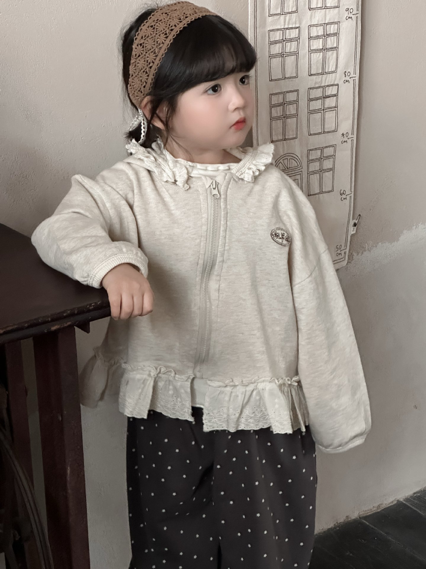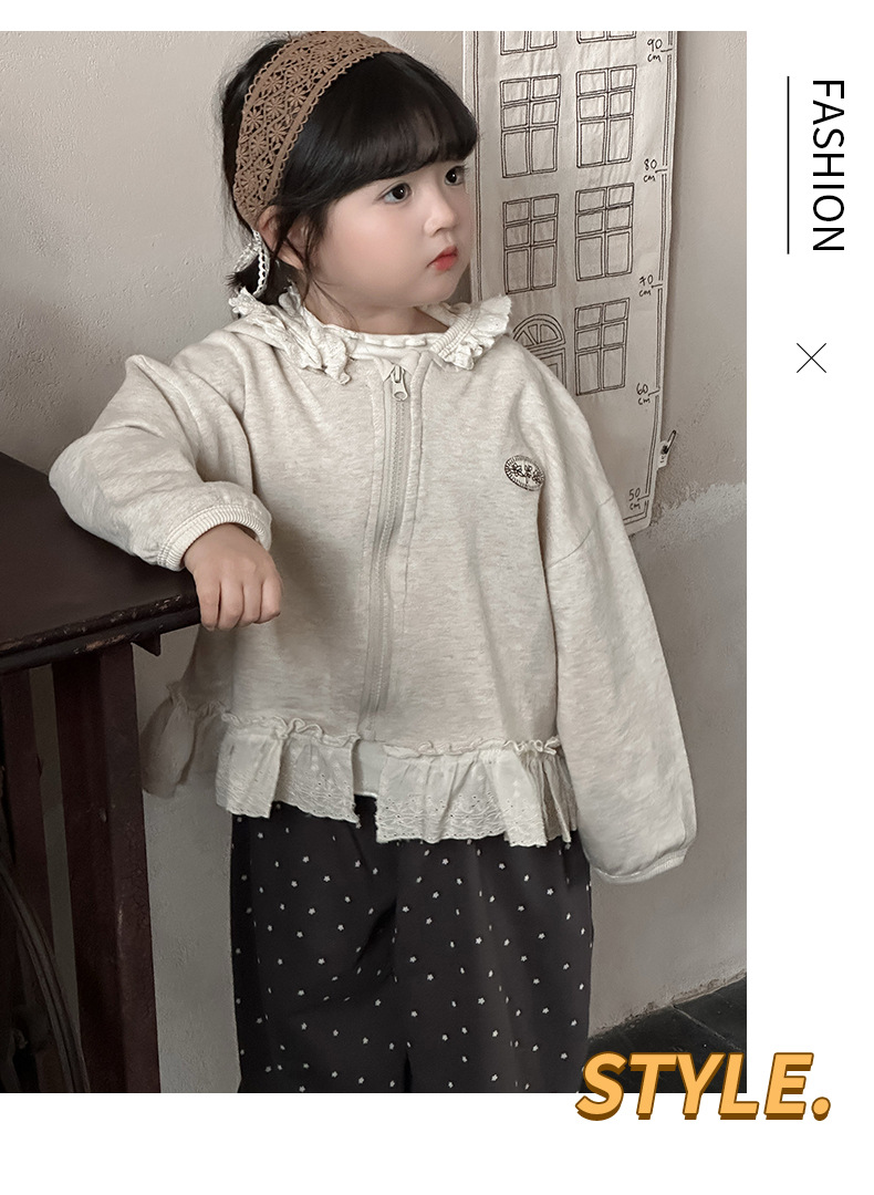 목지카 레트로 후드 재킷 2025 봄 신상 여아용 패셔너블한 레이스 지퍼 여아용 다용도 재킷스토어 가기