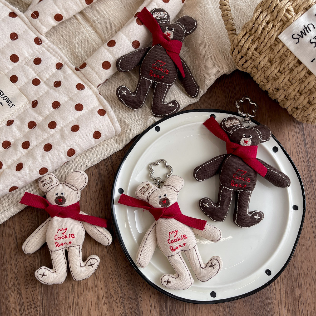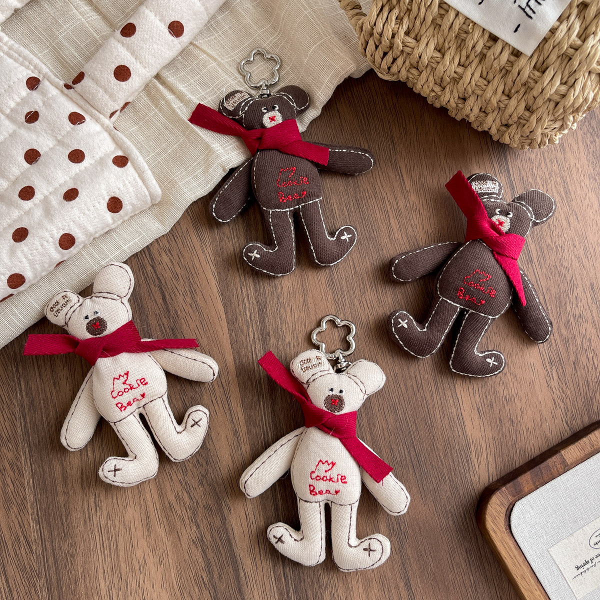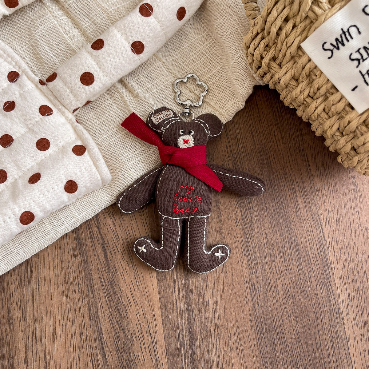 한국 패브릭 코튼 만화 스카프 베어 브로치 트렌디 한 알파벳 베어 교수형 액세서리 모든 매치 백 펜던트 키 체인