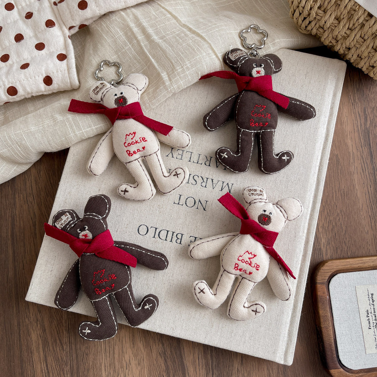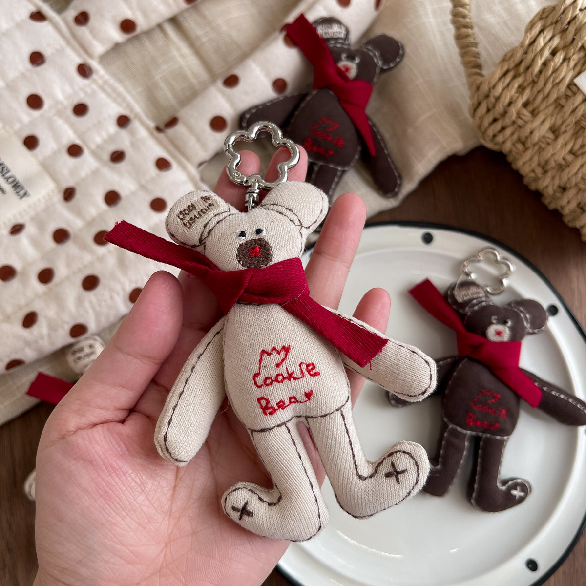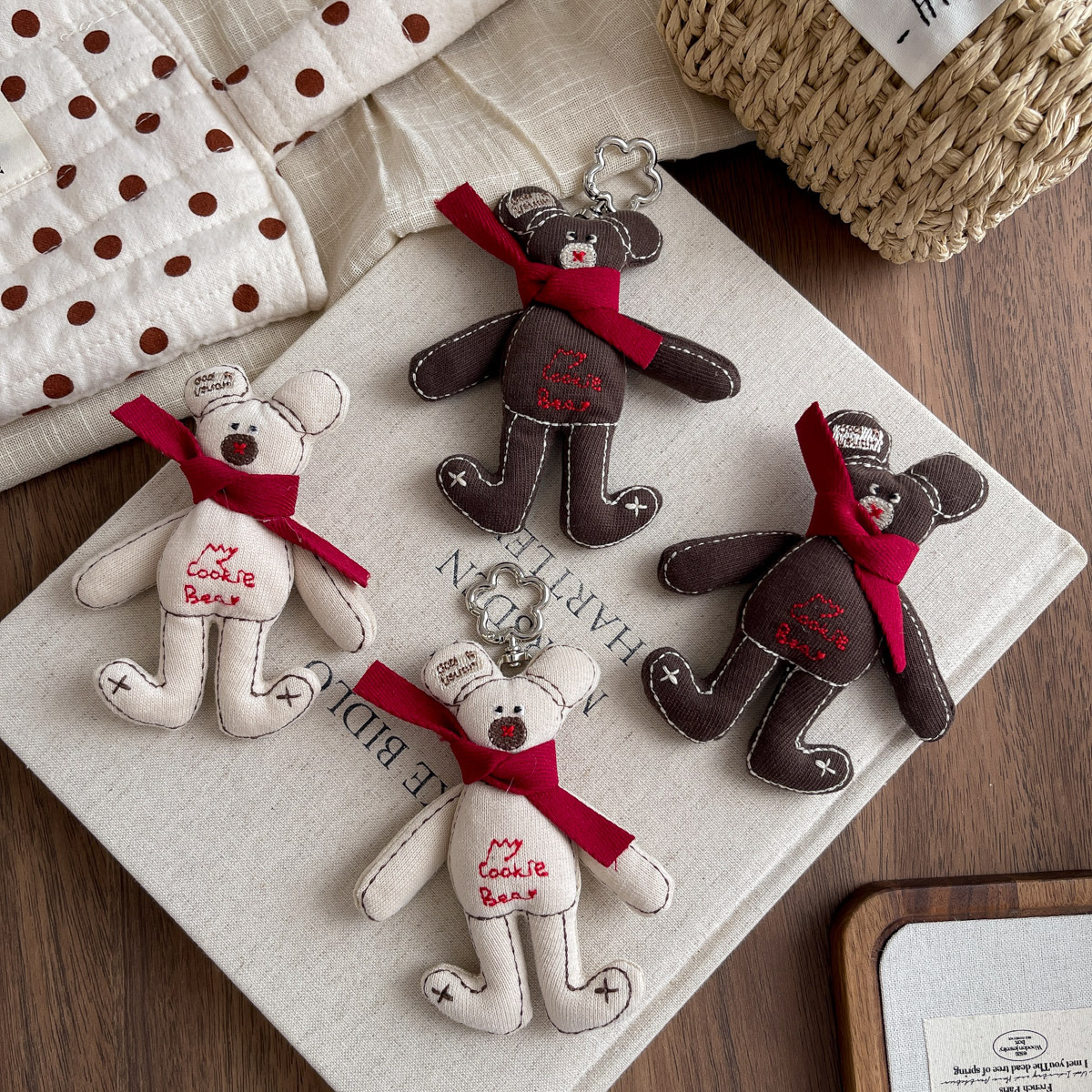 한국 패브릭 코튼 만화 스카프 베어 브로치 트렌디 한 알파벳 베어 교수형 액세서리 모든 매치 백 펜던트 키 체인