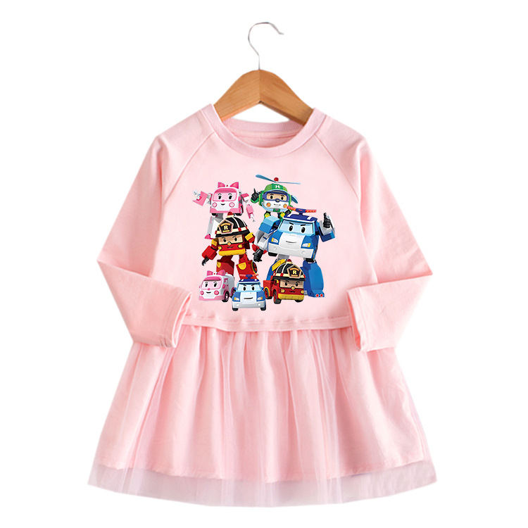 2025 한국 스타일 봄 가을 새 소녀 원피스 만화 긴 소매 메쉬 원피스 아기 외국인 스타일 공주 원피스